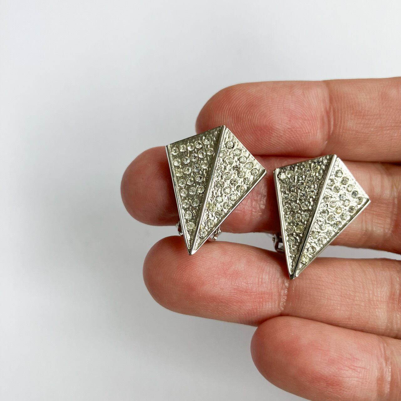 シルバーメタルの土台に小粒のクリアラインストーンのシャープでクールなデザインが、とても素敵なヴィンテージイヤリングです。