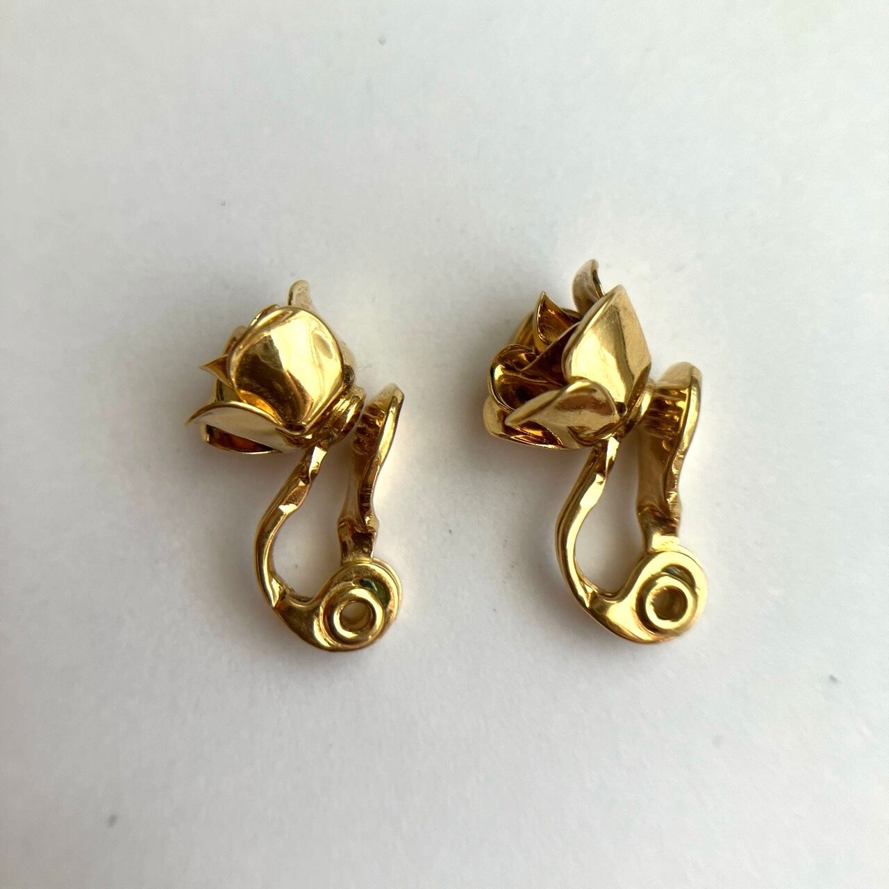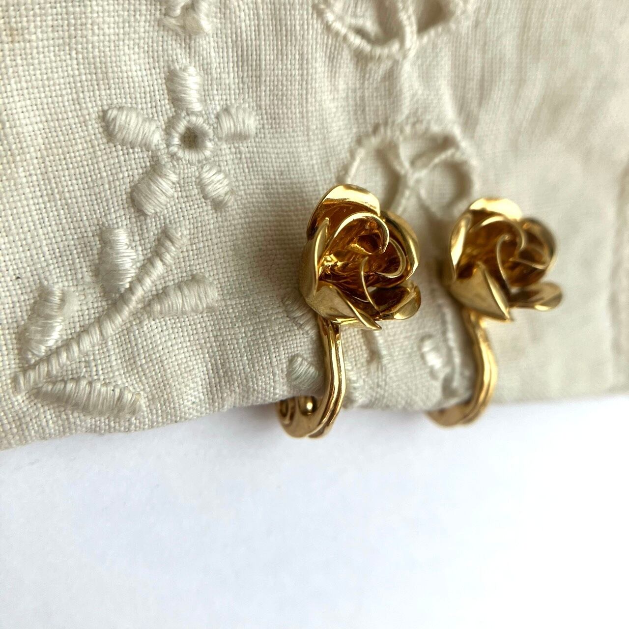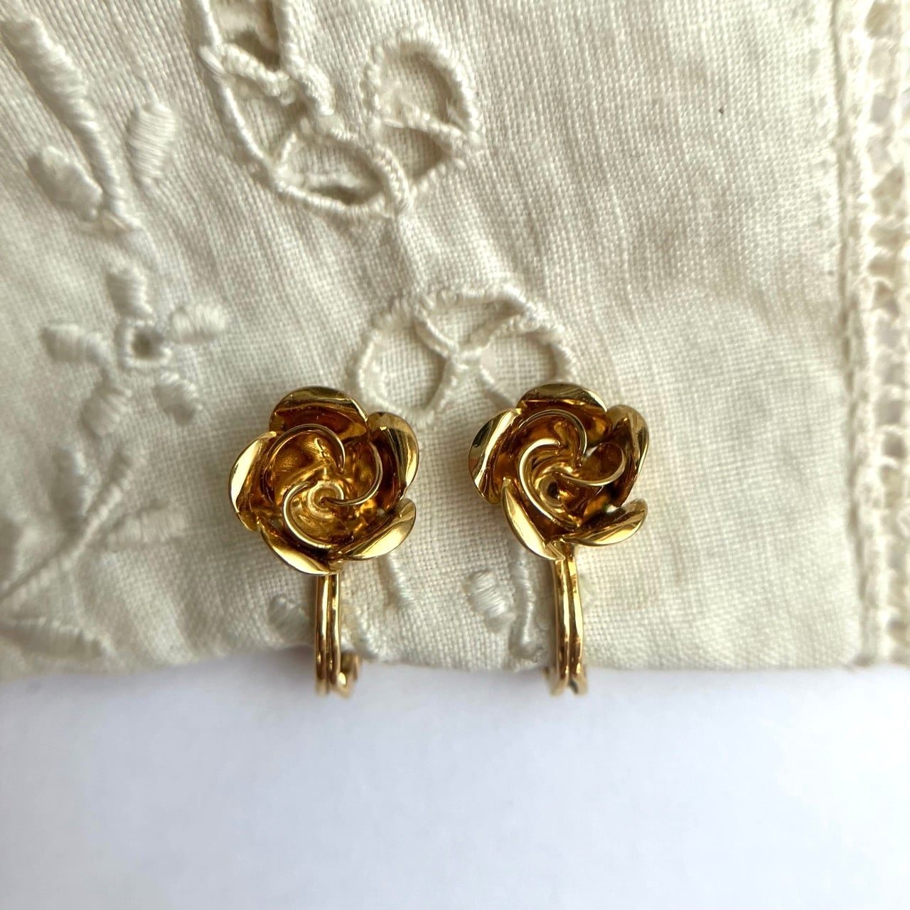 1937年にアメリカで設立され、メタルを使った高品質でモダンなデザインで人気のジュエリーメーカー"Monet"(モネ)の、ゴールドメタルの薔薇のデザインが、とても素敵なヴィンテージイヤリングです。