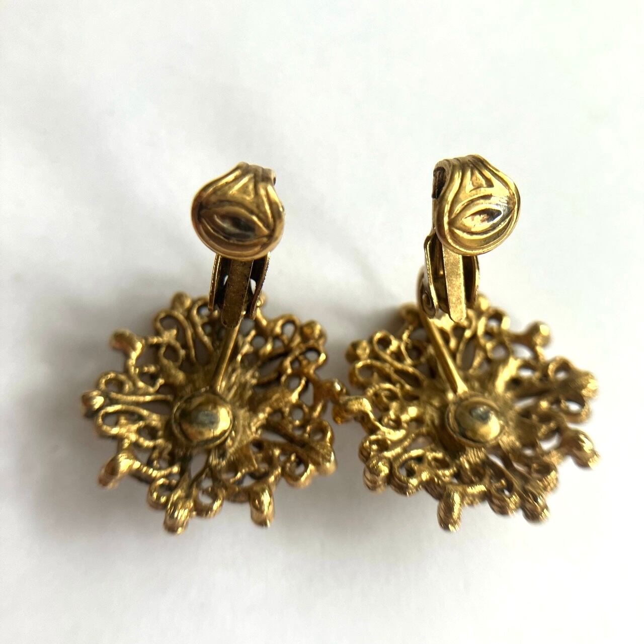 【状態】経年による裏面のイヤリング金具の多少の変色、全体に落ち着いた風合いはありますが、着用時に気になるほどではありません。