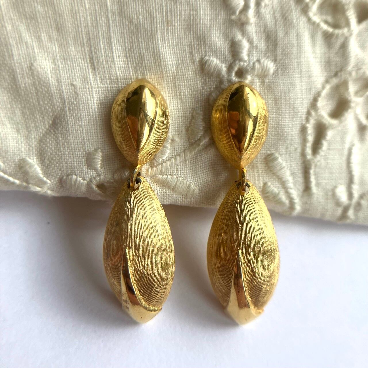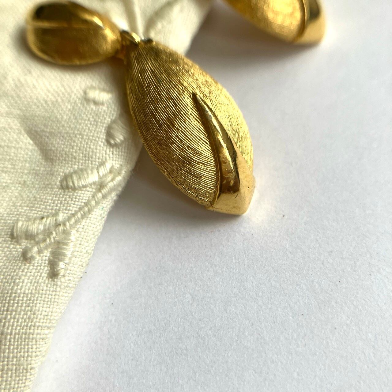 艶と加工のゴールドメタルでデザインされた、オブジェのような揺れるデザインがとても素敵なヴィンテージイヤリングです。