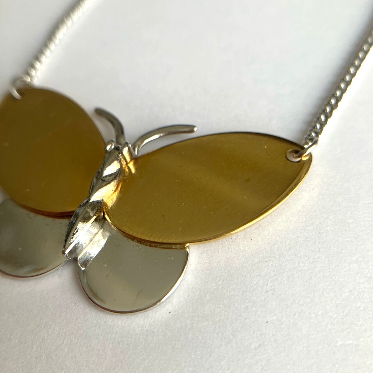 シルバー&ゴールドメタルのシンプルで洗練された蝶のデザインが、とても素敵な”AVON”(エイボン)のヴィンテージネックレスです。
