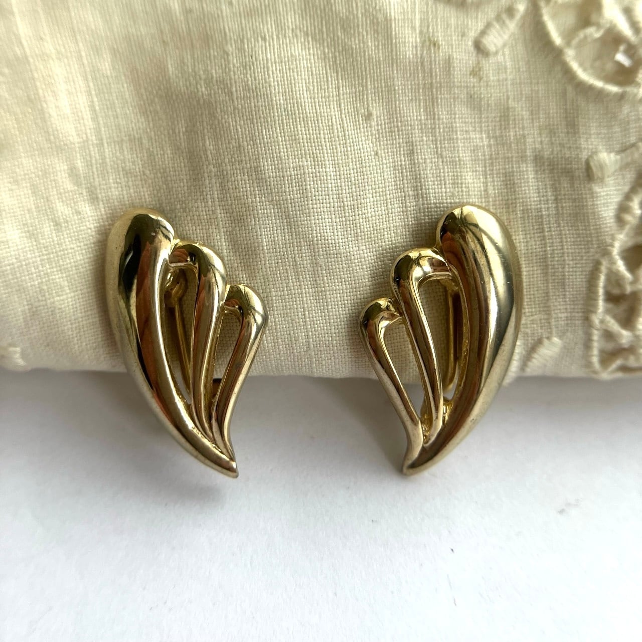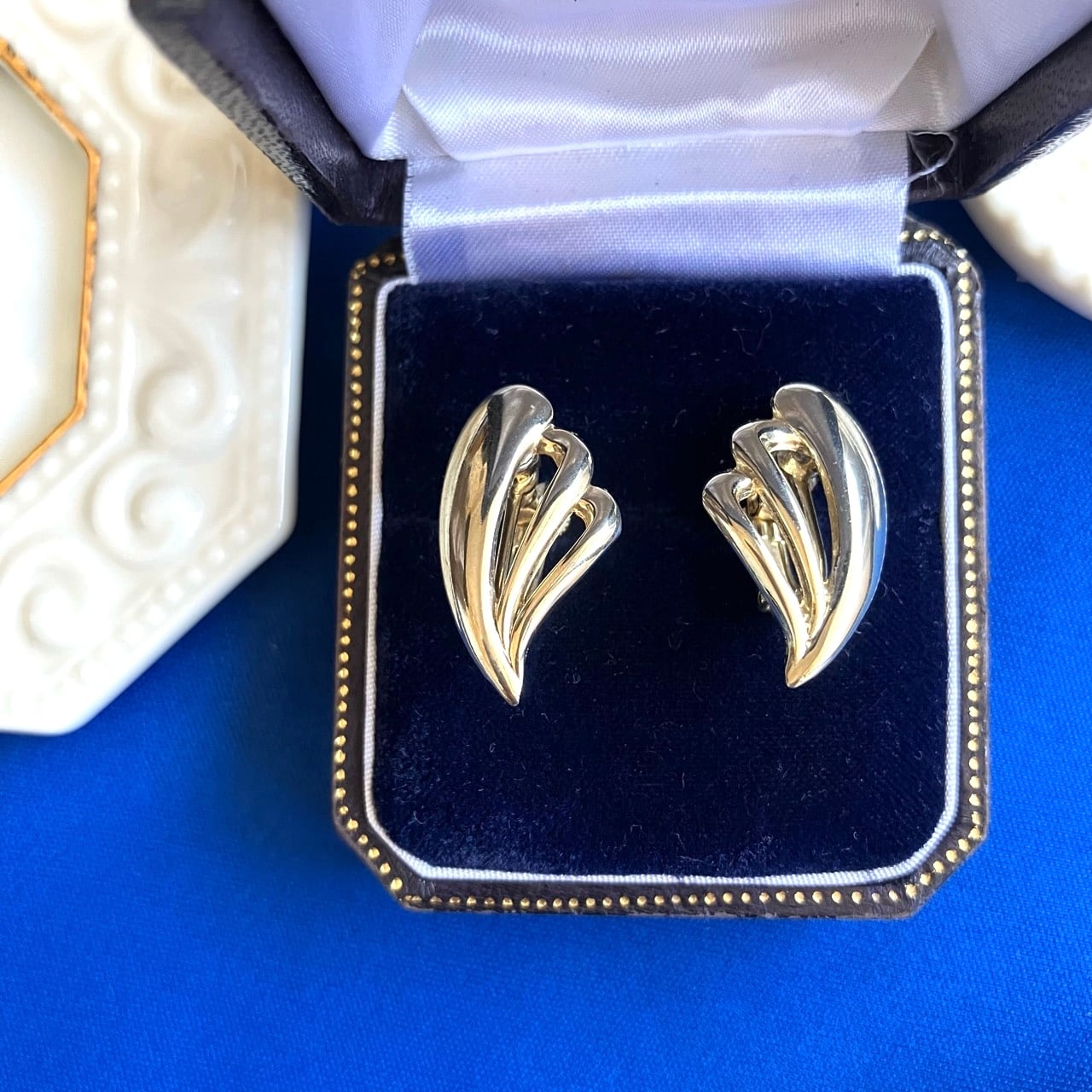 ゴールドメタルの美しい羽根のようなデザインが、とても素敵なヴィンテージイヤリングです。