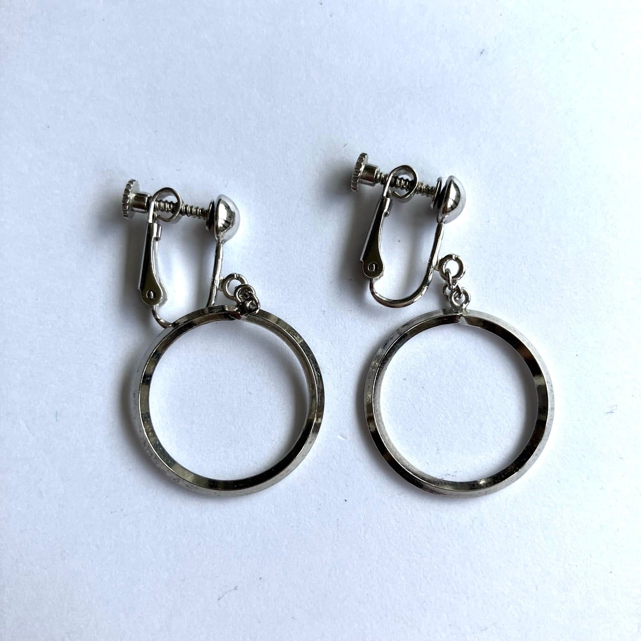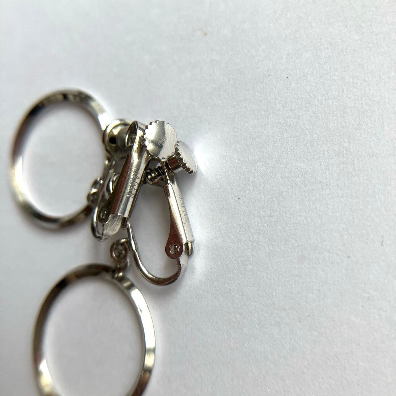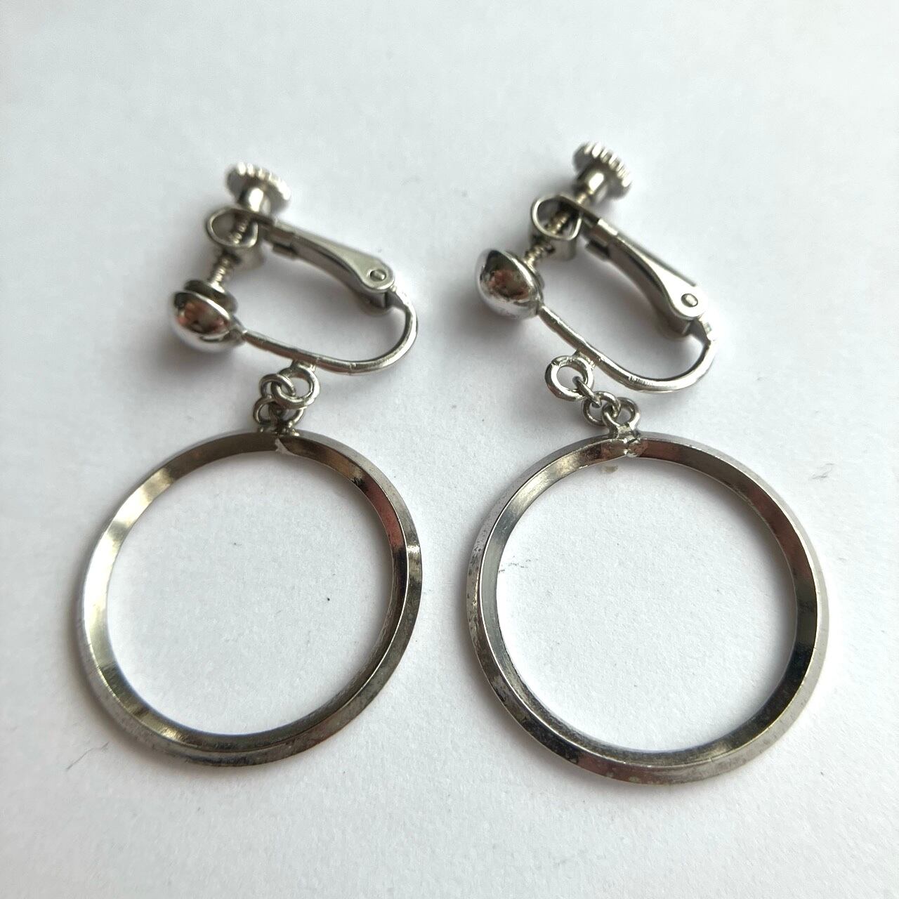シルバーメタルのシャープなカットが美しいサークルパーツが揺れる、シンプルモダンなデザインがとても素敵なヴィンテージイヤリングです。