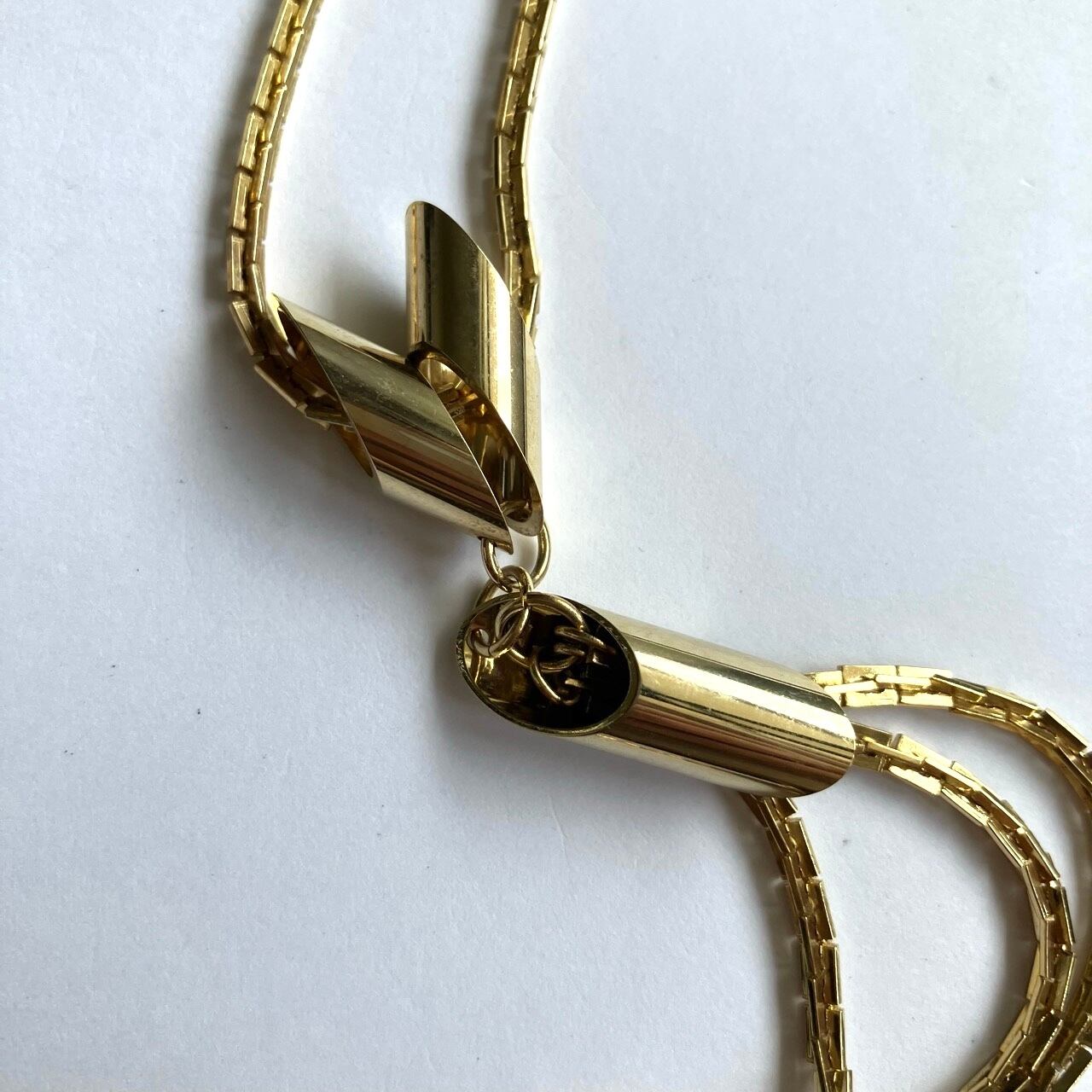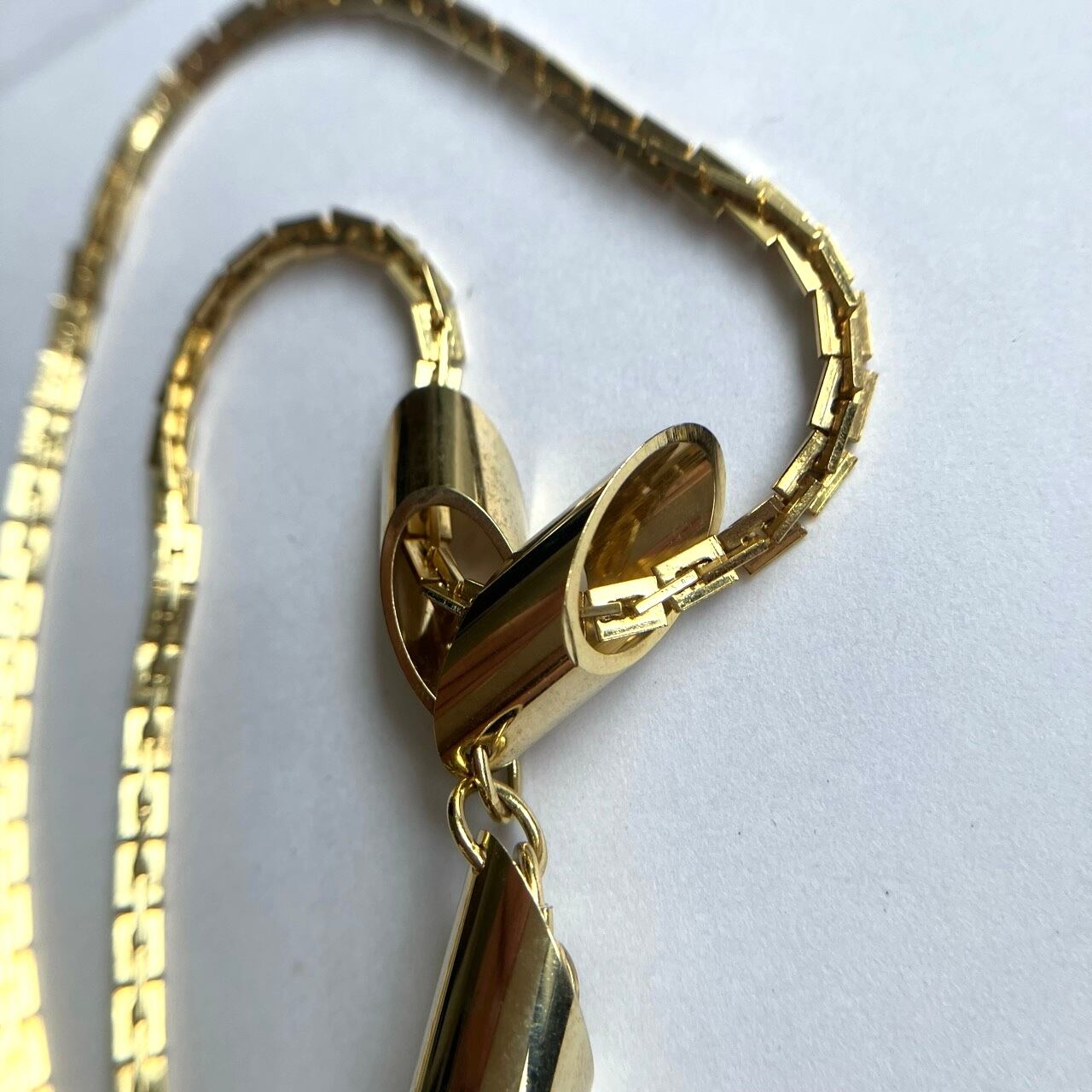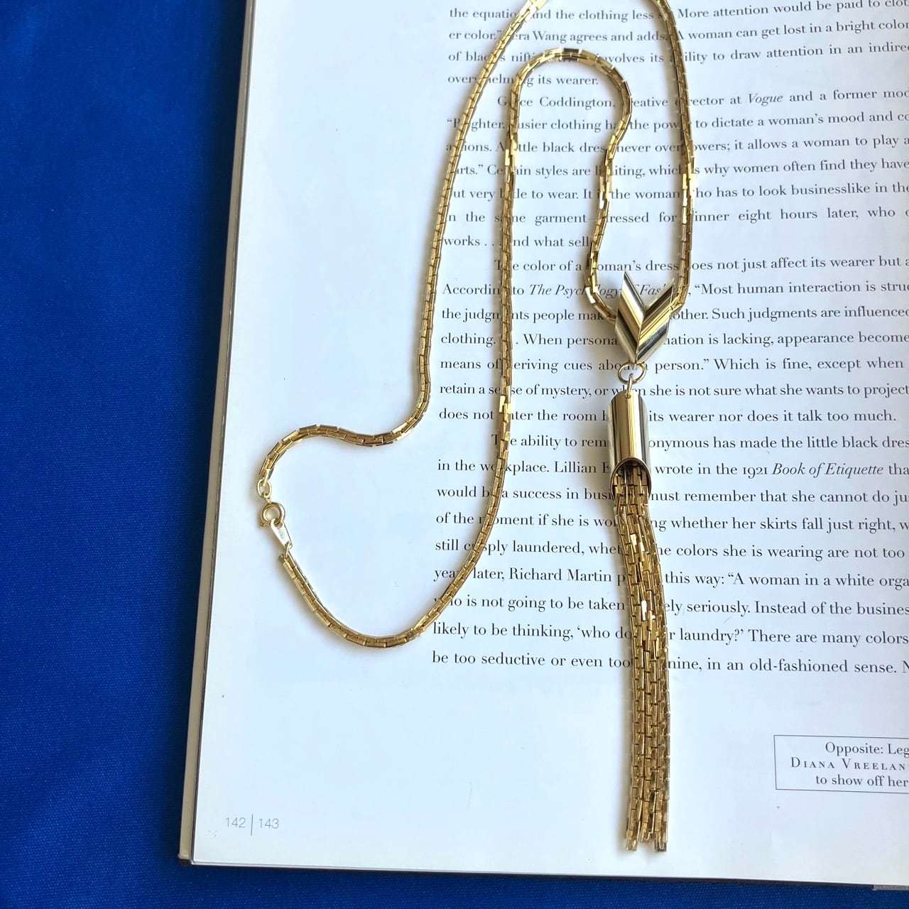ゴールドメタルのデザインされたスクエアチェーンに、美しくチェーンが揺れるタッセルがアクセントになった洗練されたモダンなデザインが、とても素敵なヴィンテージネックレスです。