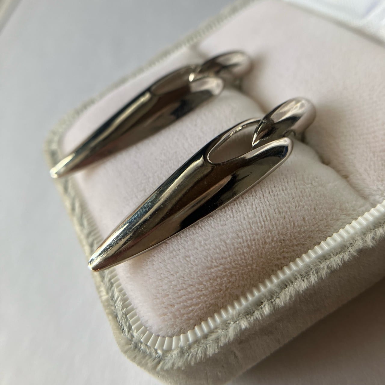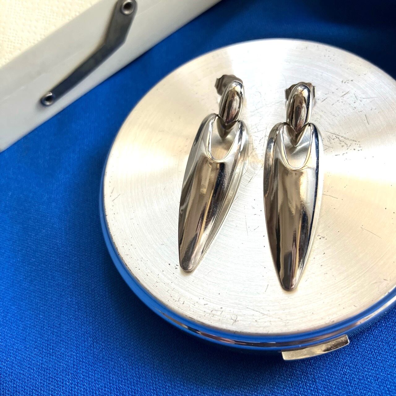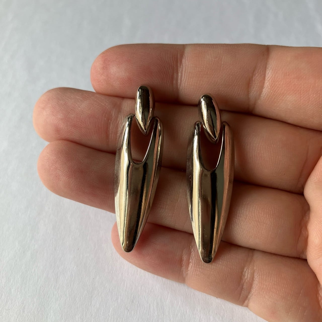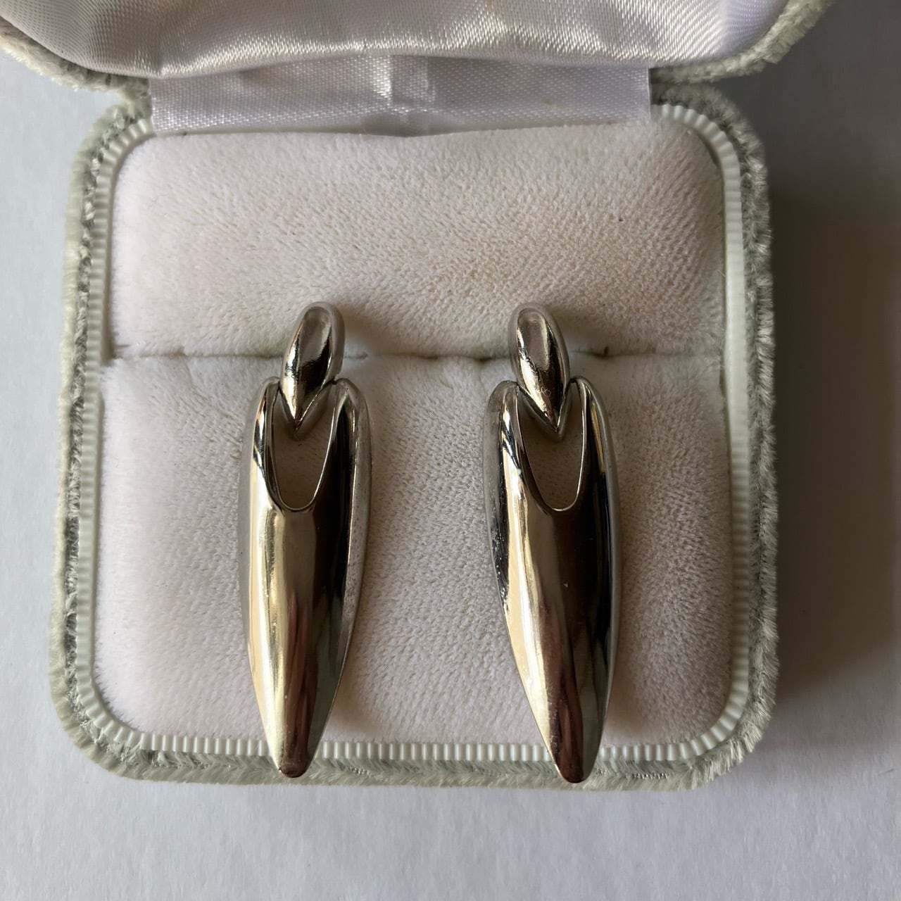 シルバーメタルのシャープでお洒落なデザインが、とても素敵な”AVON”(エイボン)のヴィンテージピアスです。