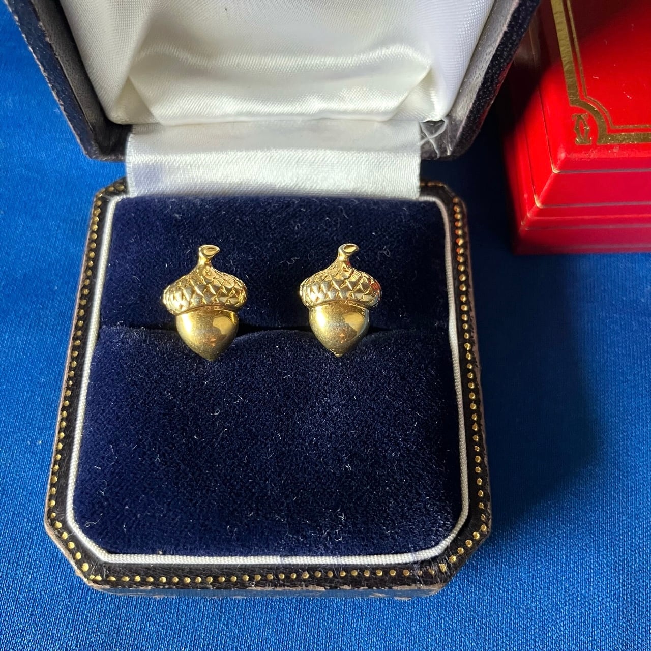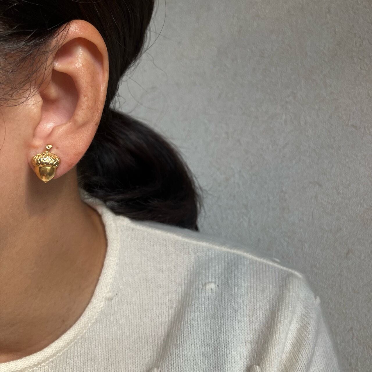 ゴールドメタルのぷっくりとしたどんぐりのデザインが、とても素敵なヴィンテージイヤリングです。