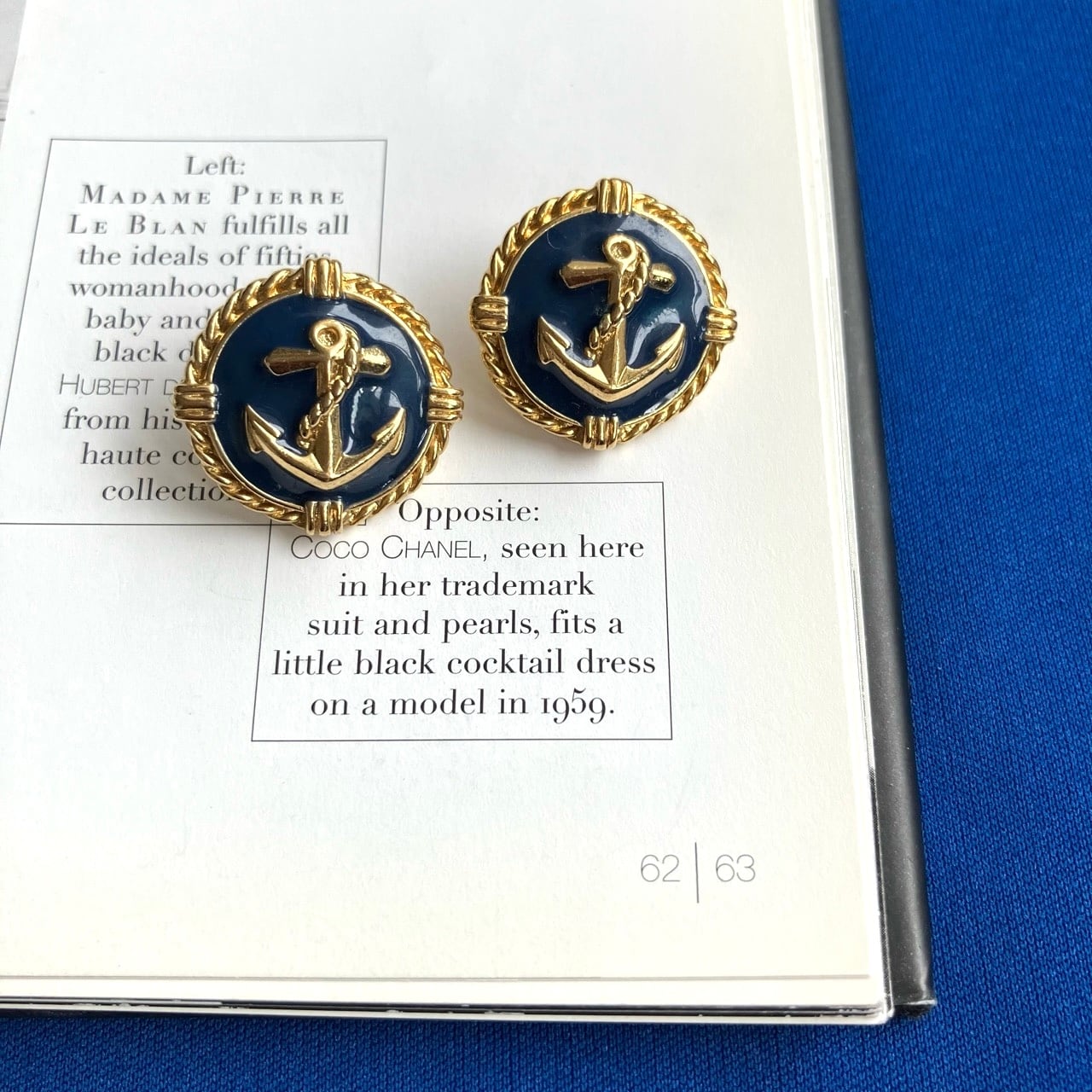 ゴールドメタル&ネイビーエナメルのアンカー(イカリ)のデザインが、とても素敵な”AVON”(エイボン)のヴィンテージピアスです。