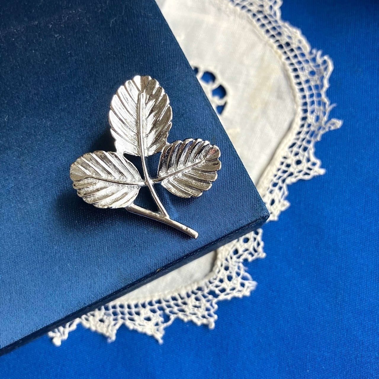 1949年に設立されたジュエリーメーカー”Sarah Coventry”(サラコベントリー)の、シルバーメタルの三つ葉のお洒落なデザインが、とても素敵なヴィンテージブローチです。
