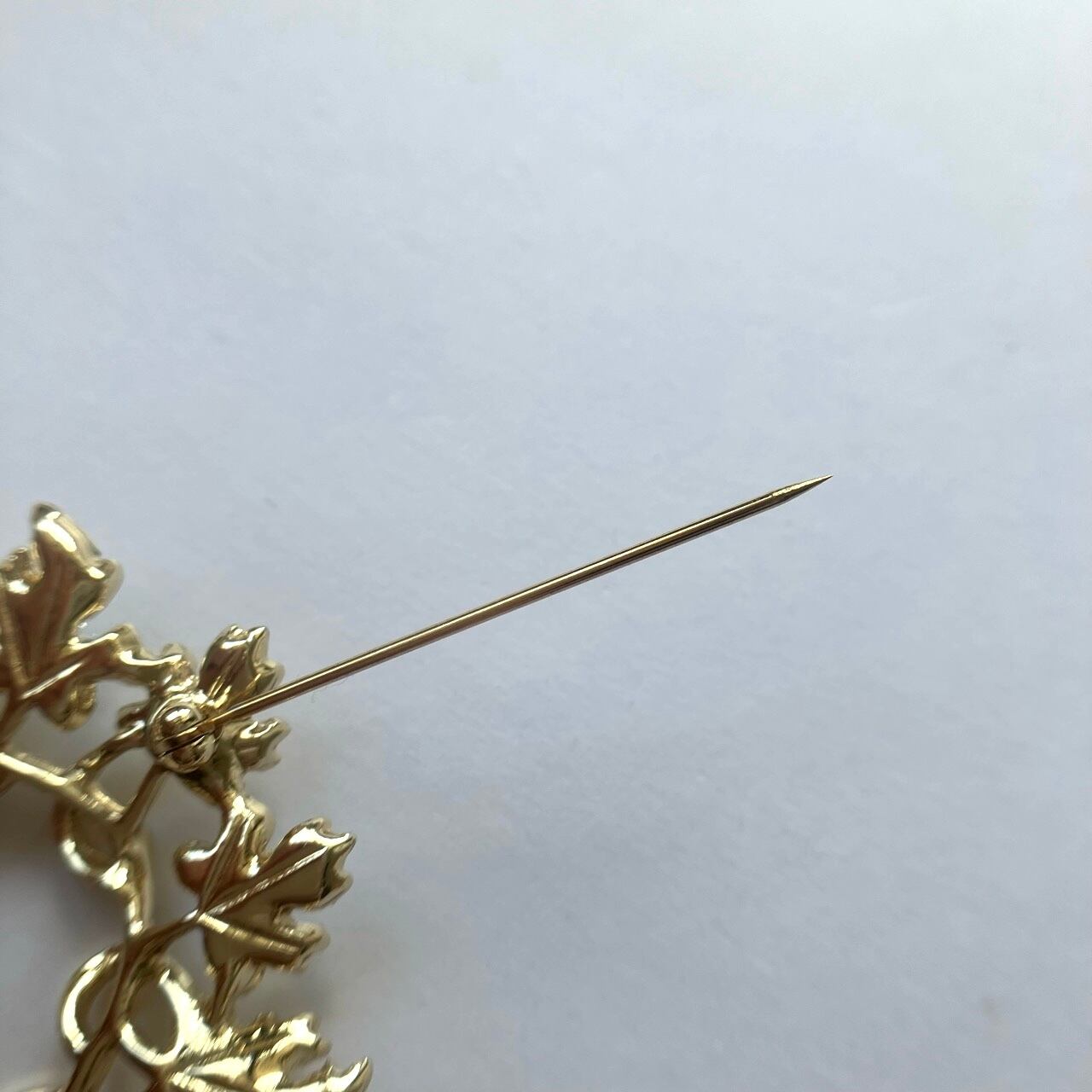 1949年に設立されたジュエリーメーカー”Sarah Coventry”(サラコベントリー )の、ゴールド&シルバーメタルのリーフの輪のような美しいデザインが、とても素敵なヴィンテージブローチです。