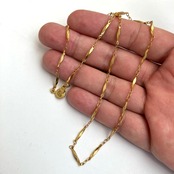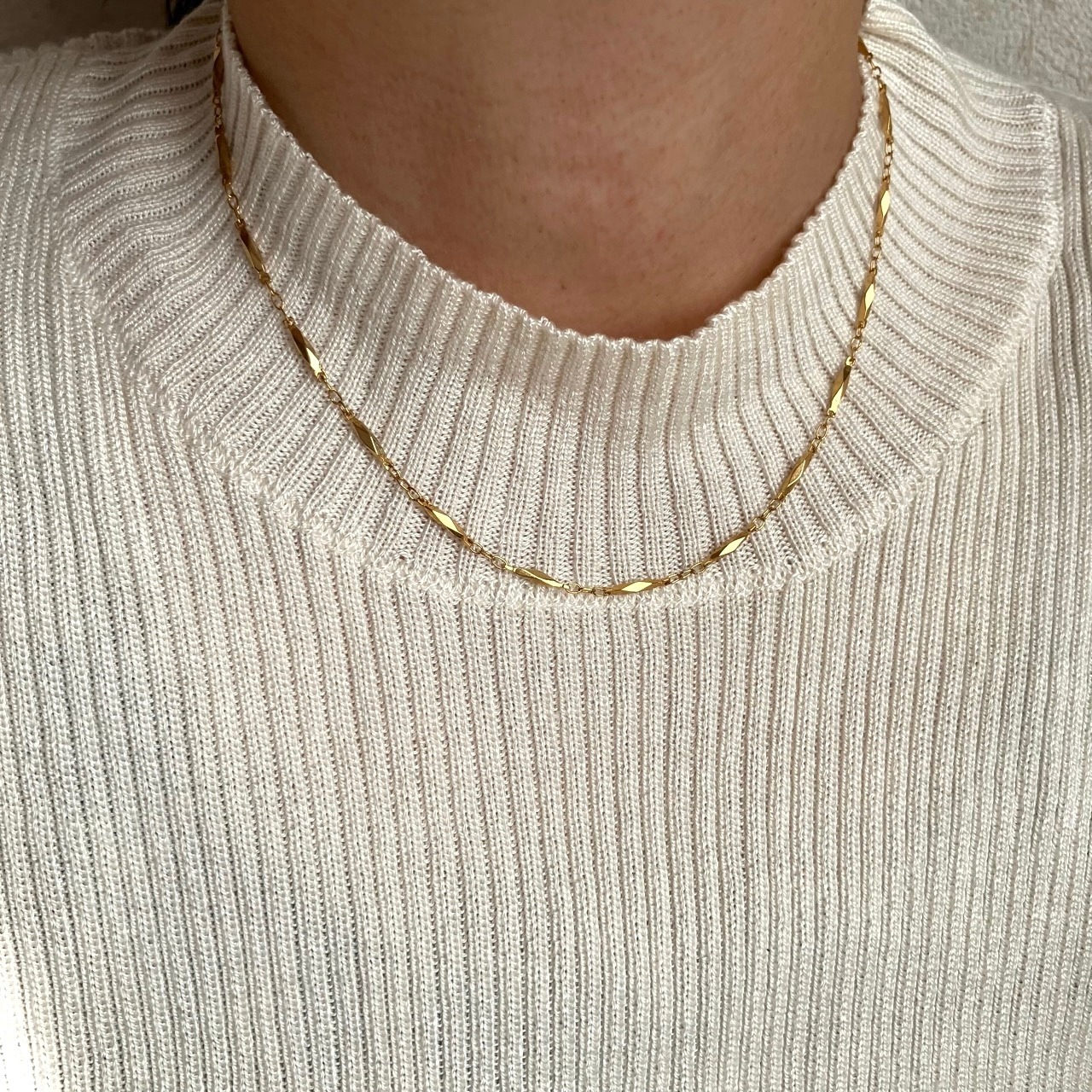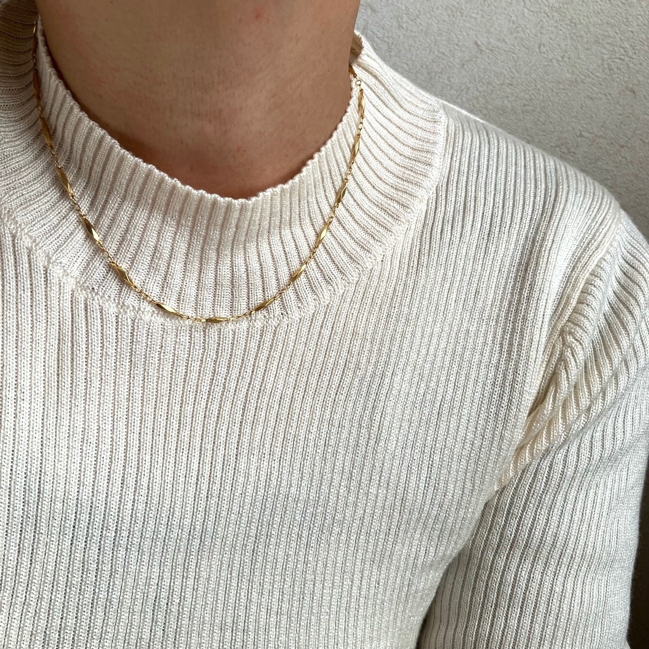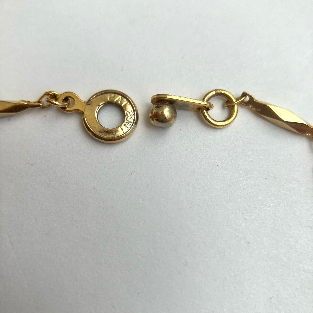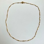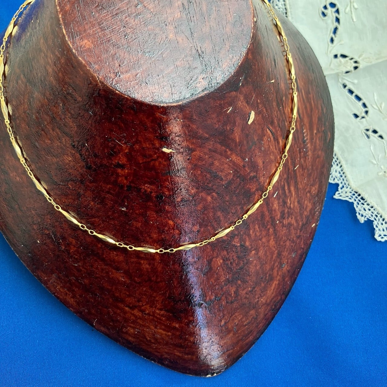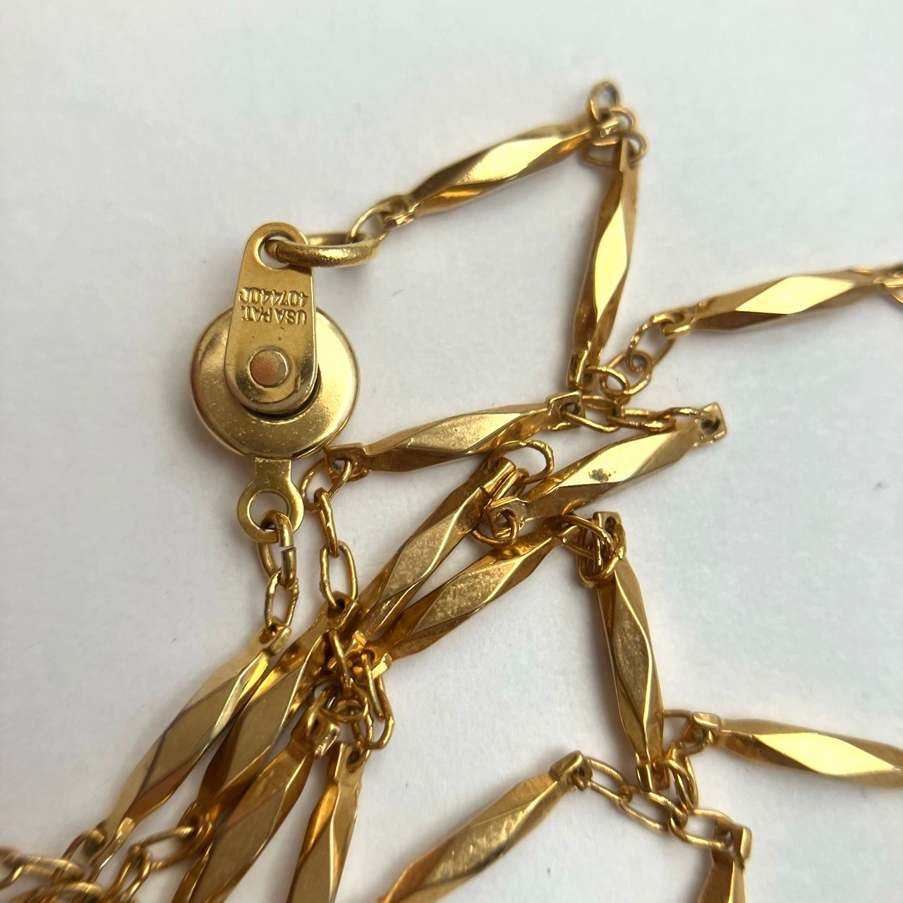 落ち着いたゴールドのシャープなメタルカットパーツがアクセントになった華奢なチェーンのデザインが、とても素敵なヴィンテージネックレスです。