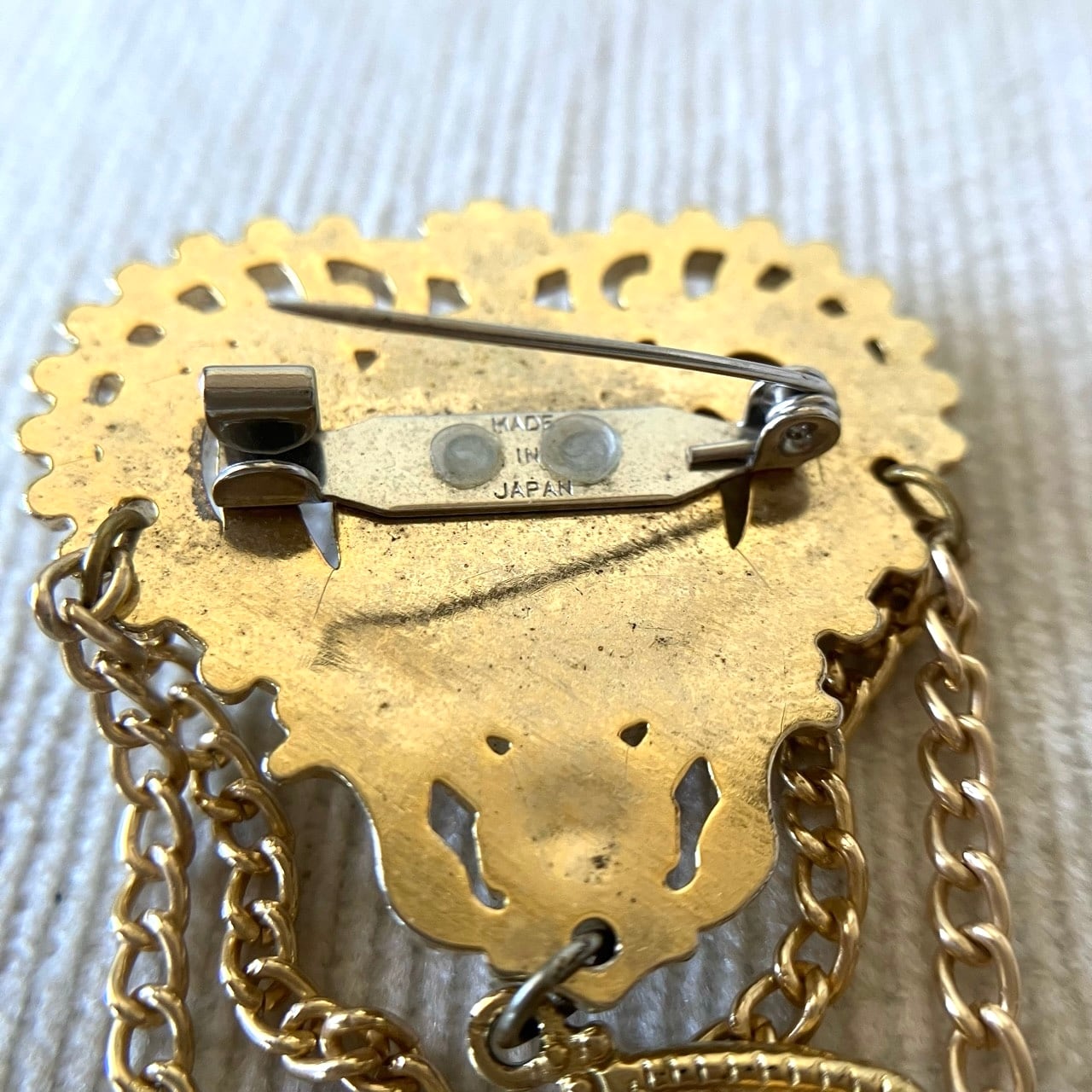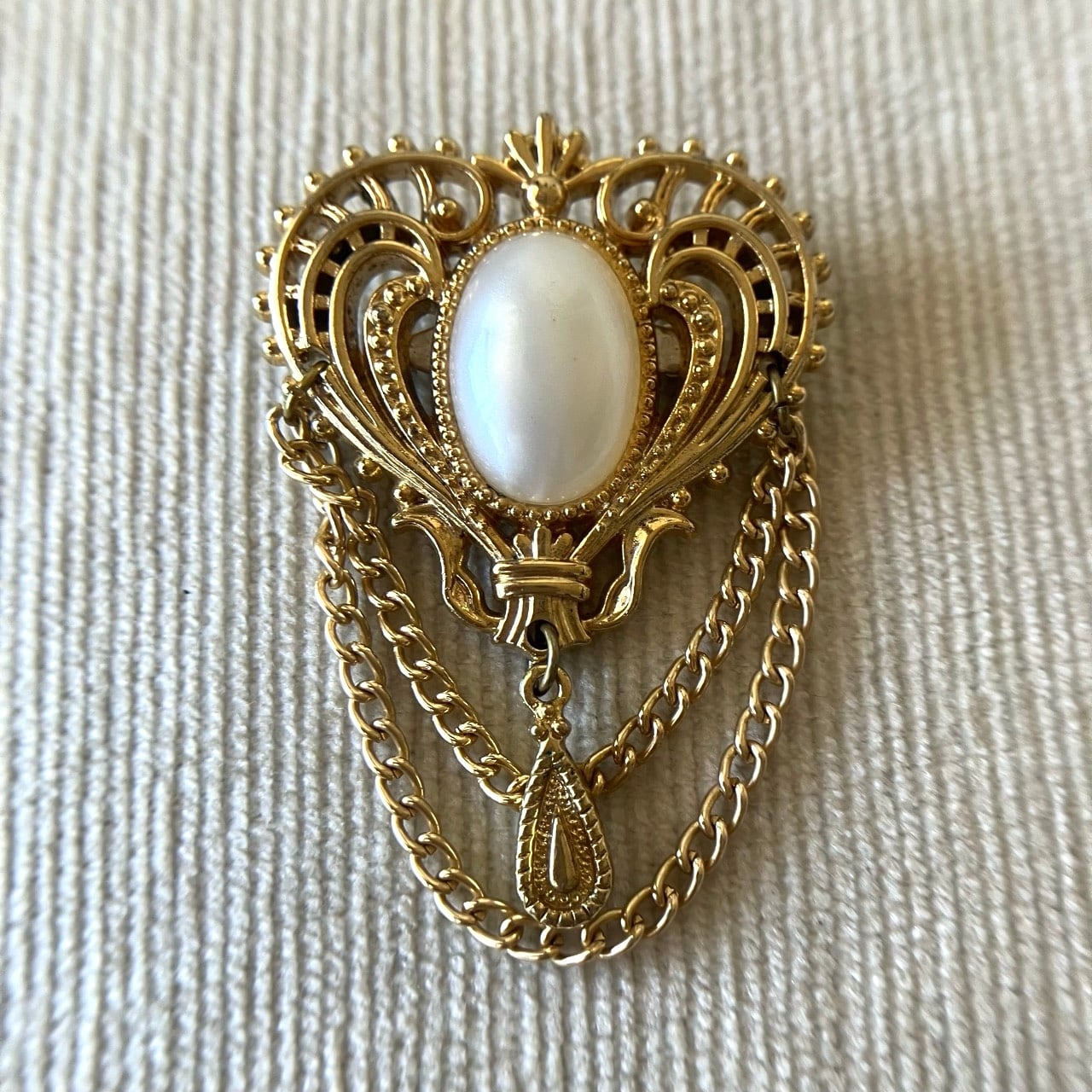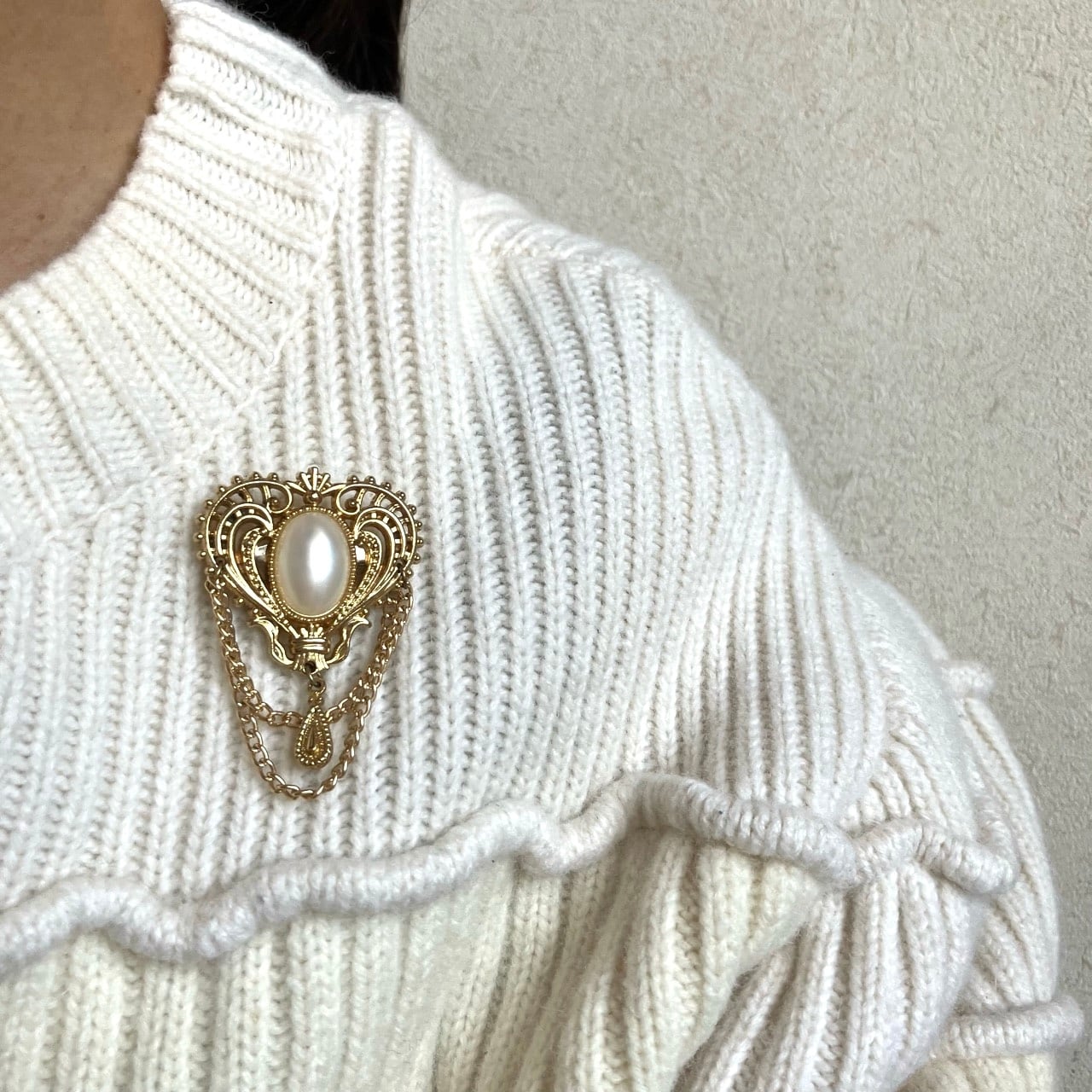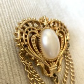 gold heart & pearl chain brooch[b-642]ヴィンテージブローチ