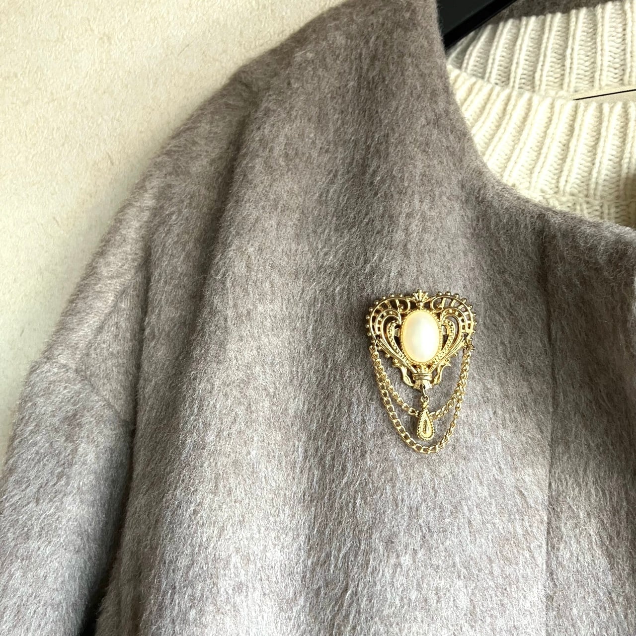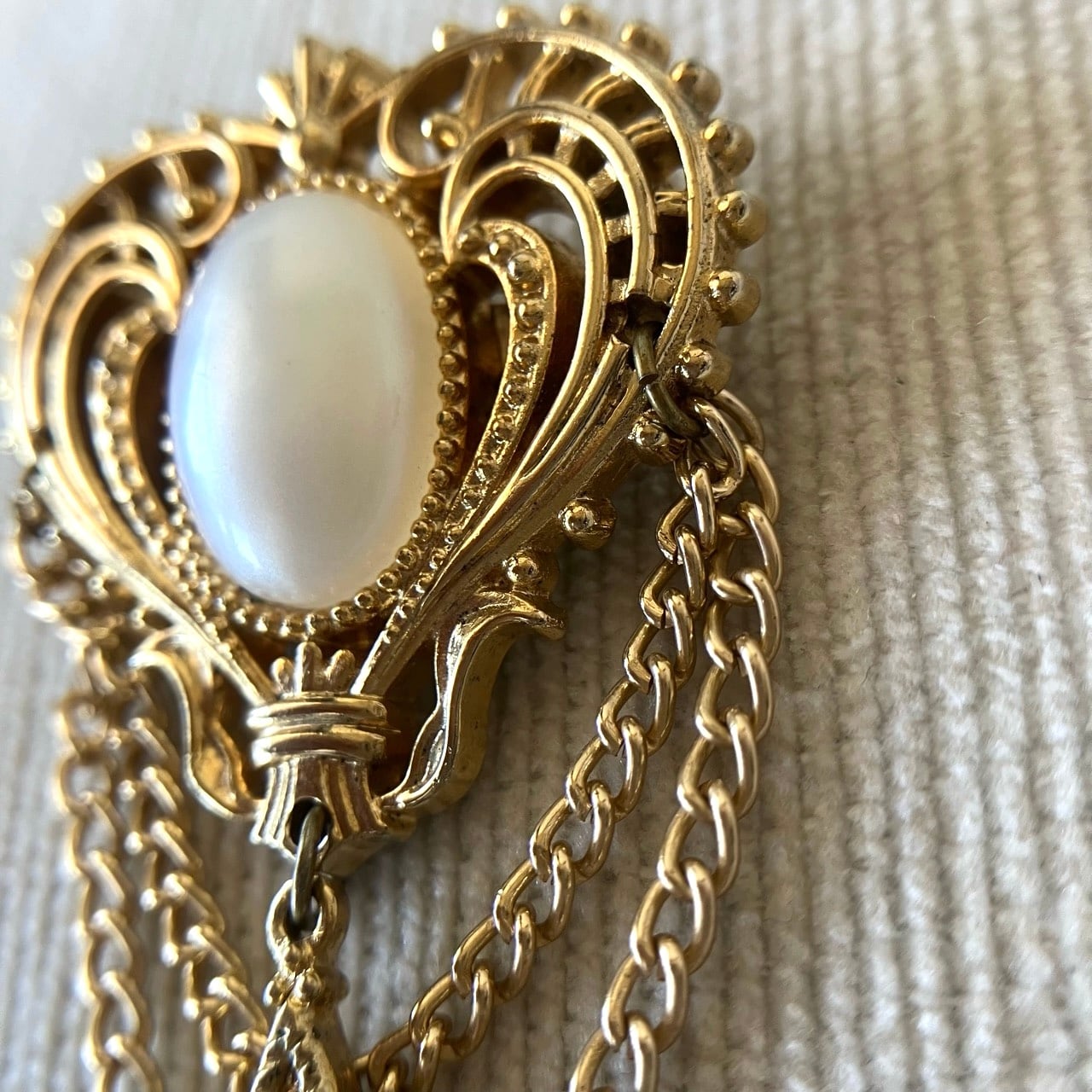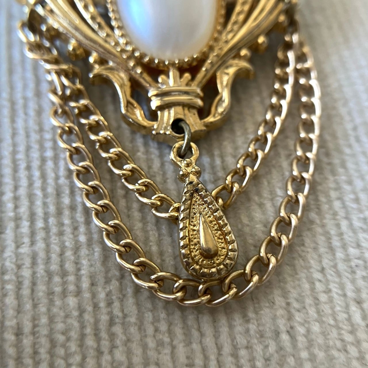 gold heart & pearl chain brooch[b-642]ヴィンテージブローチ