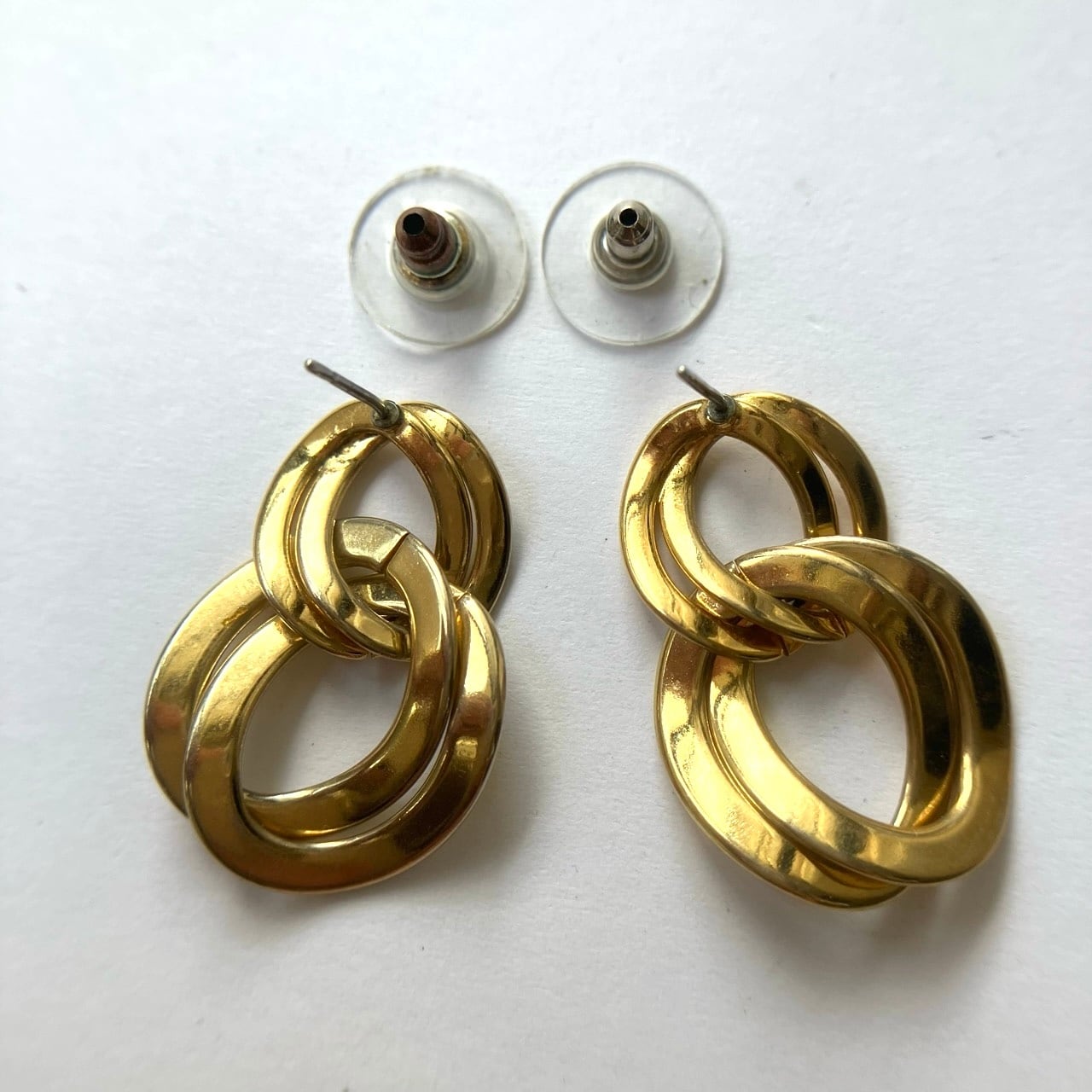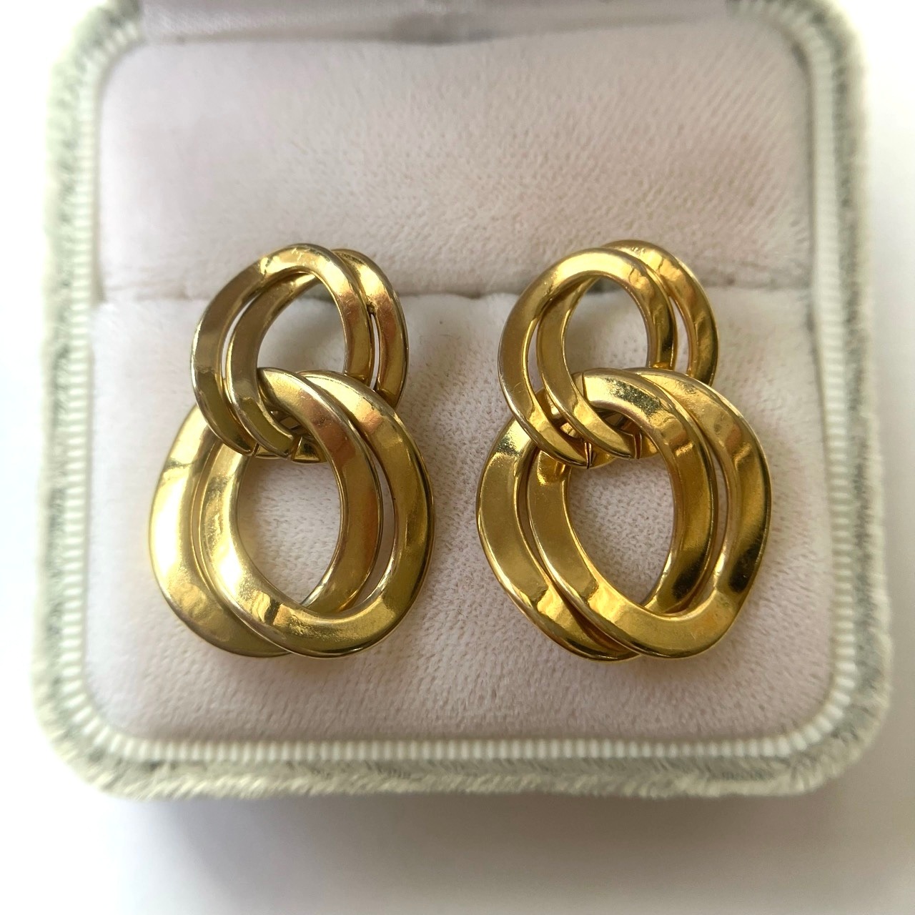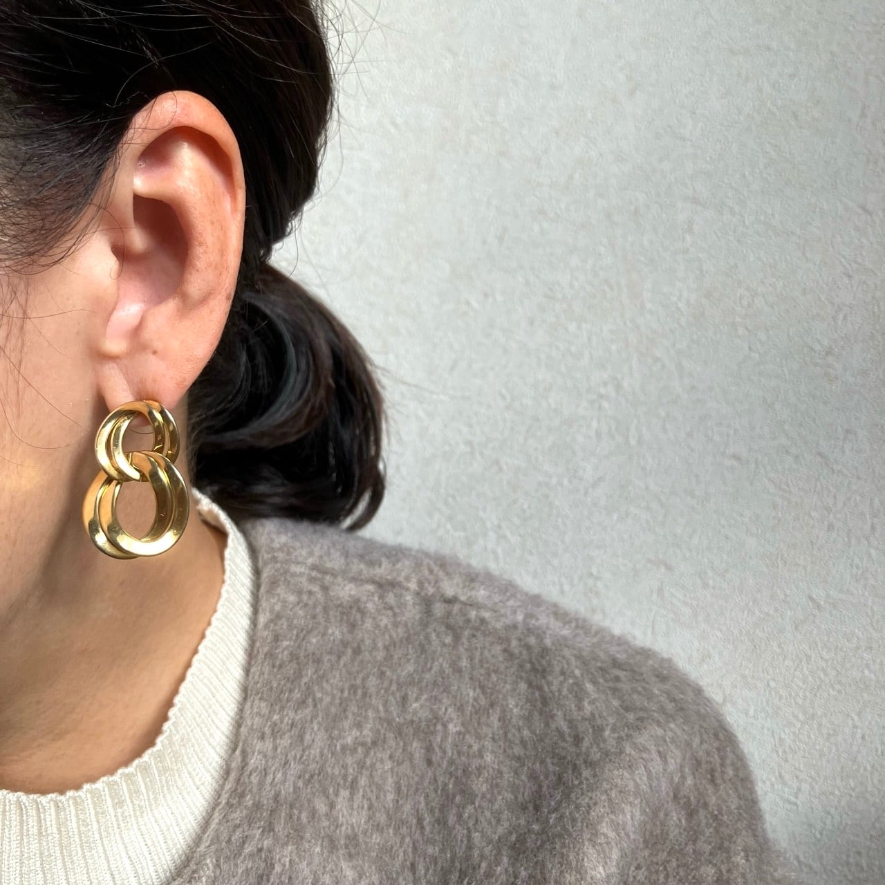 ゴールドメタルのダブルチェーンが揺れる洗練されたデザインが、とてもお洒落で素敵なヴィンテージピアスです。