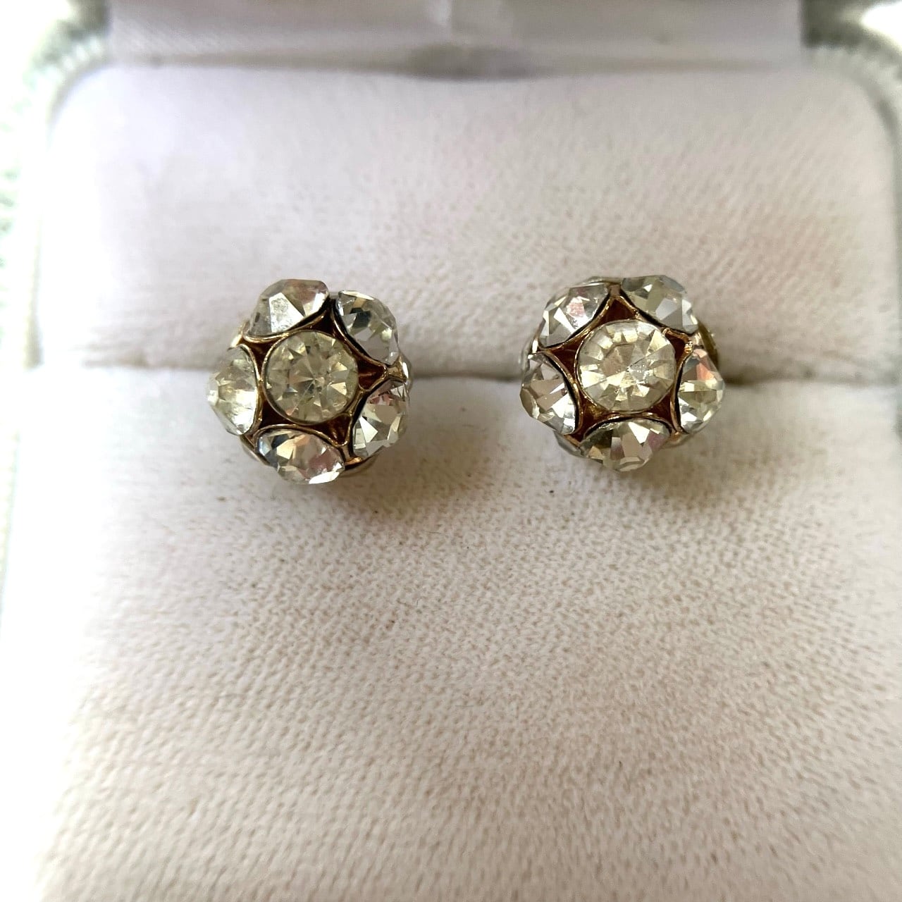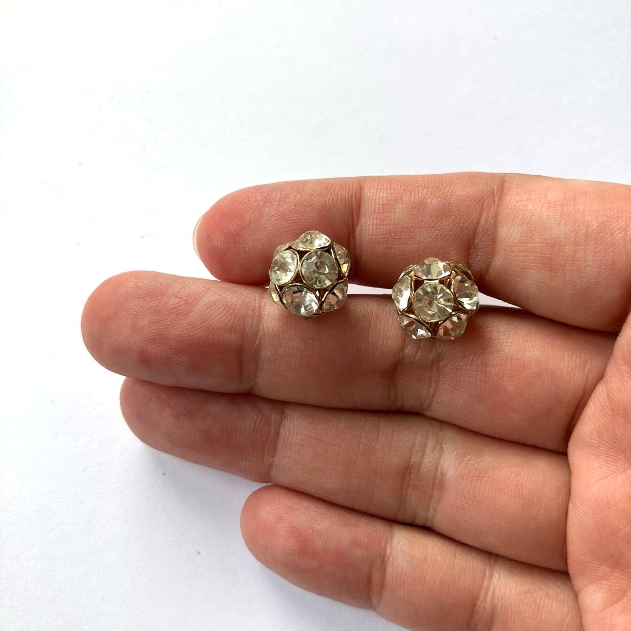 ゴールドメタルの土台にクリアラインストーンがセットされた華やかなボールのデザインが、とてもお洒落で素敵なヴィンテージピアスです。