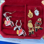 Bはゴールドメタルベースにカラーエナメルのサンタ、頭にピアス針が付いていて、身体がキャッチになっています。