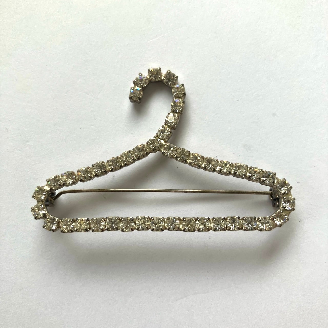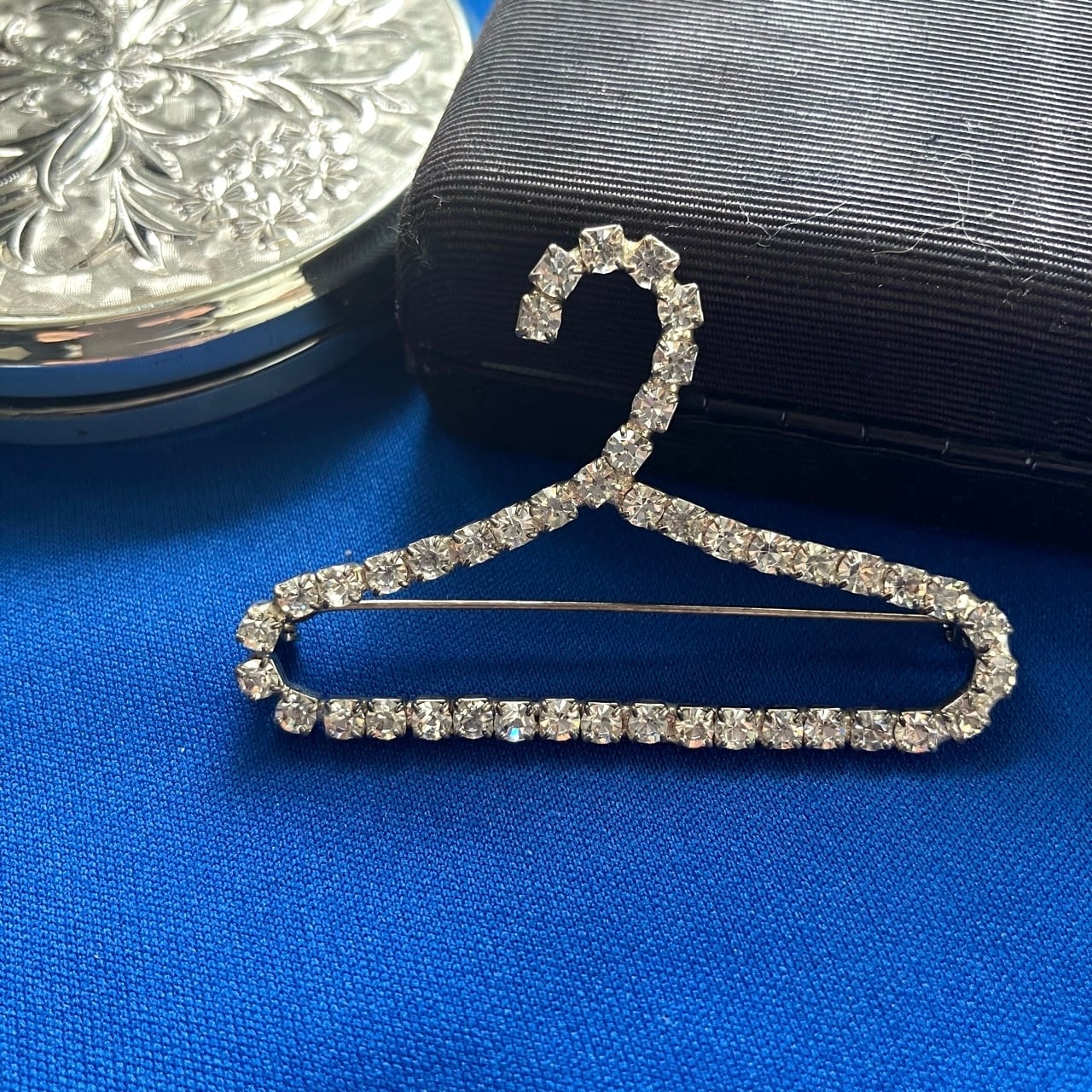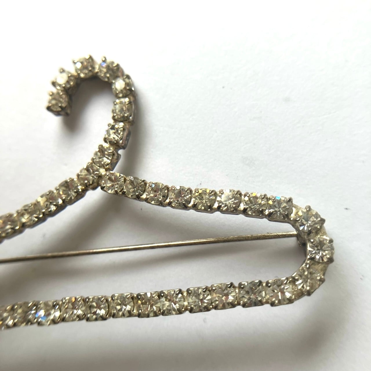クリアラインストーンのお洒落な遊び心のあるハンガーのデザインが、とても素敵なヴィンテージブローチです。