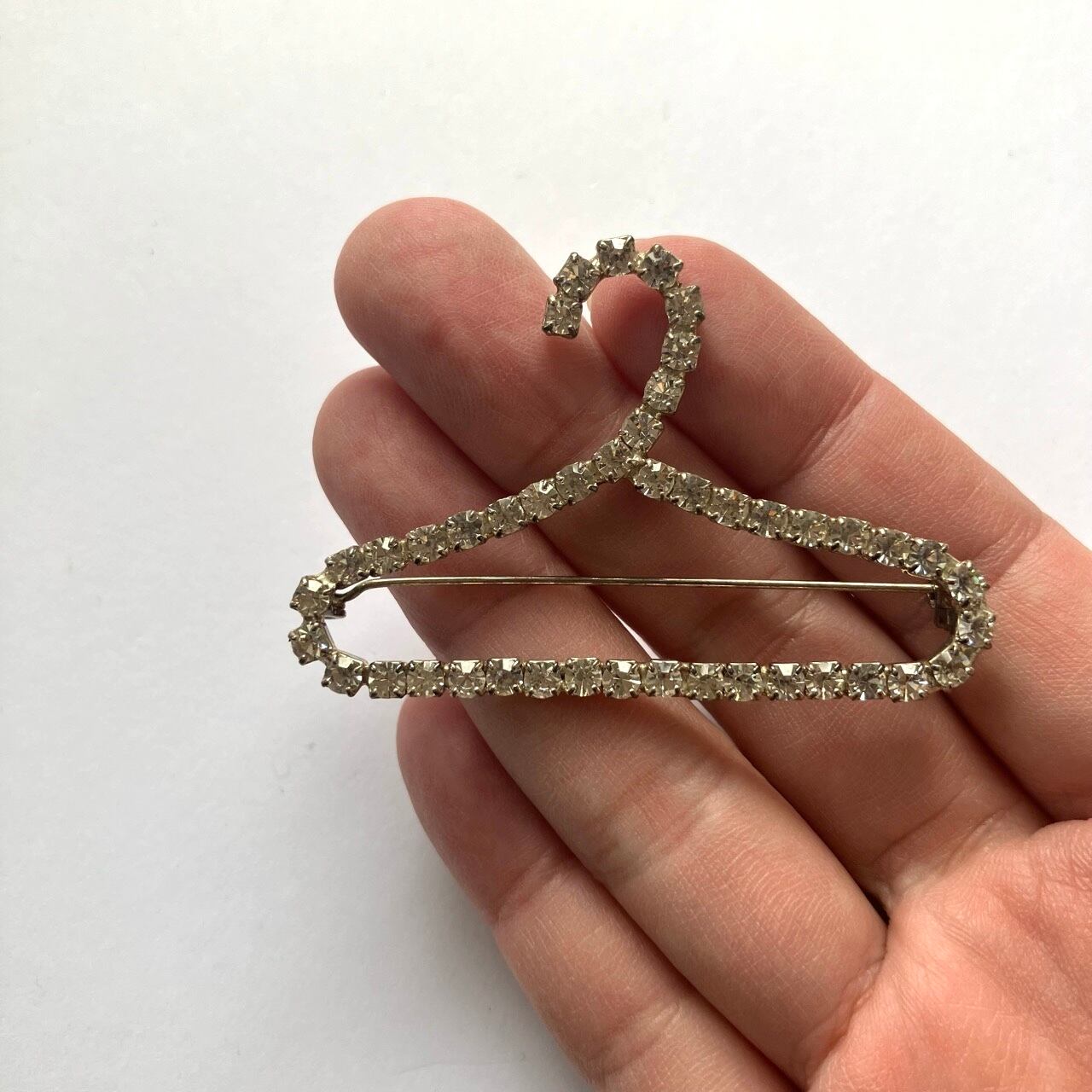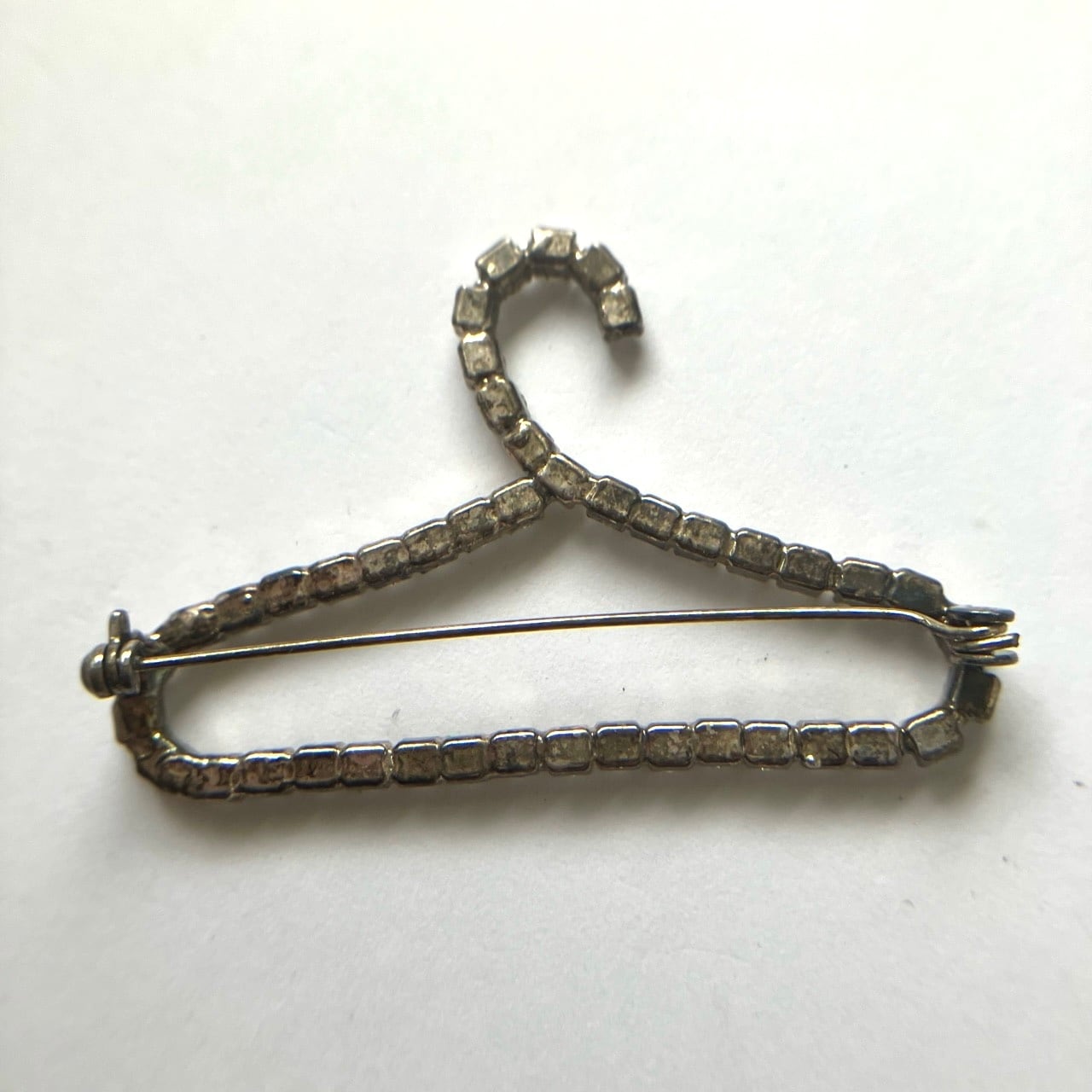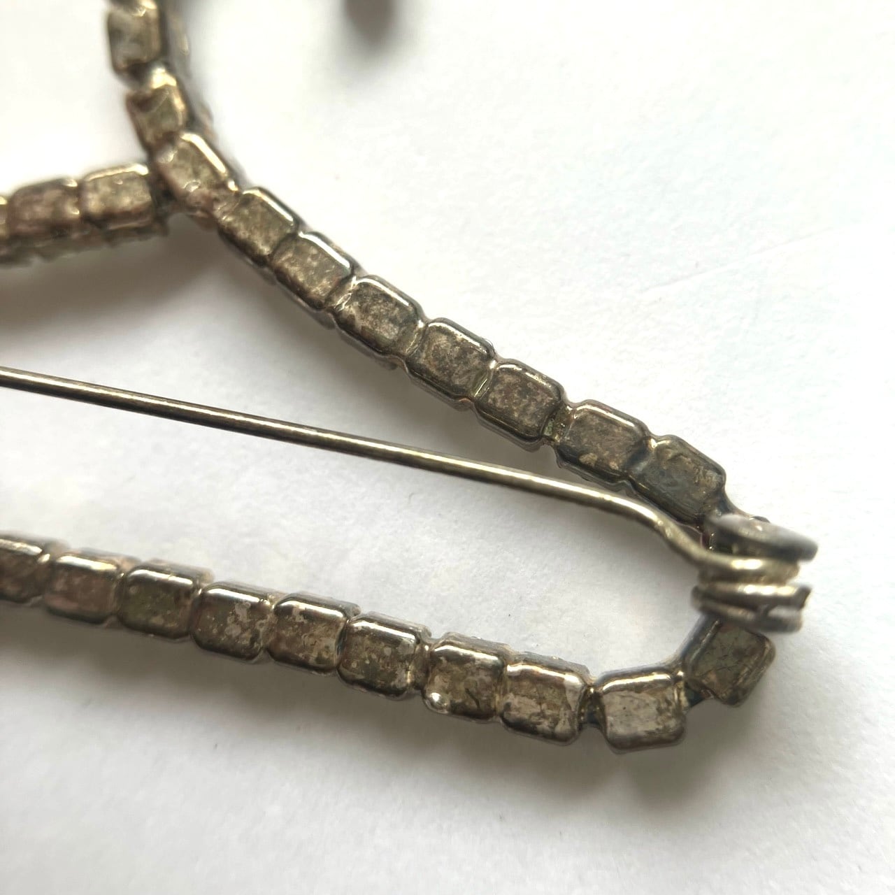 クリアラインストーンのお洒落な遊び心のあるハンガーのデザインが、とても素敵なヴィンテージブローチです。