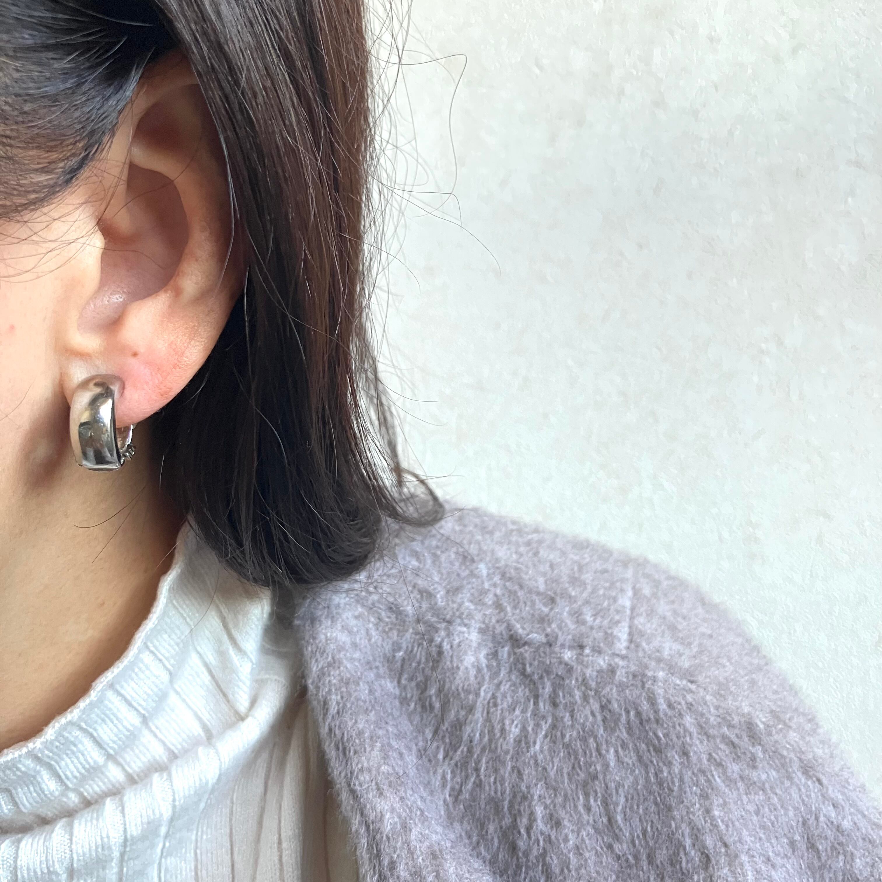 silver & rhinestone hoop earring[e-2167] ヴィンテージイヤリング