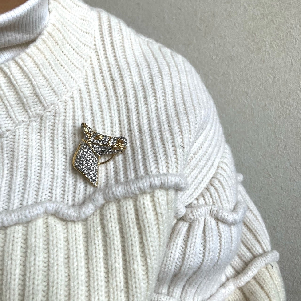 gold & rhinestone horse brooch[b-658] ヴィンテージブローチ