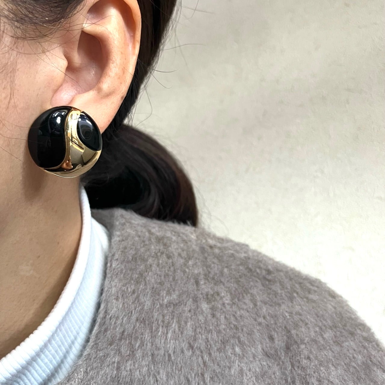 "Napier" gold & black enamel earring[e-2169] ヴィンテージイヤリング