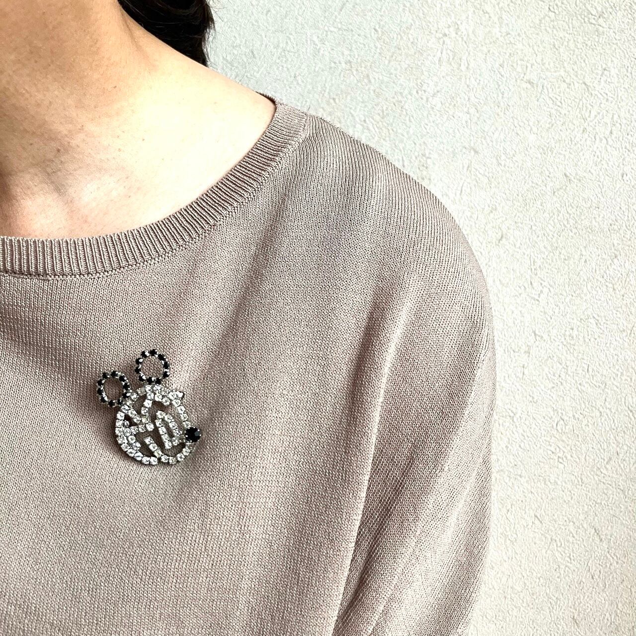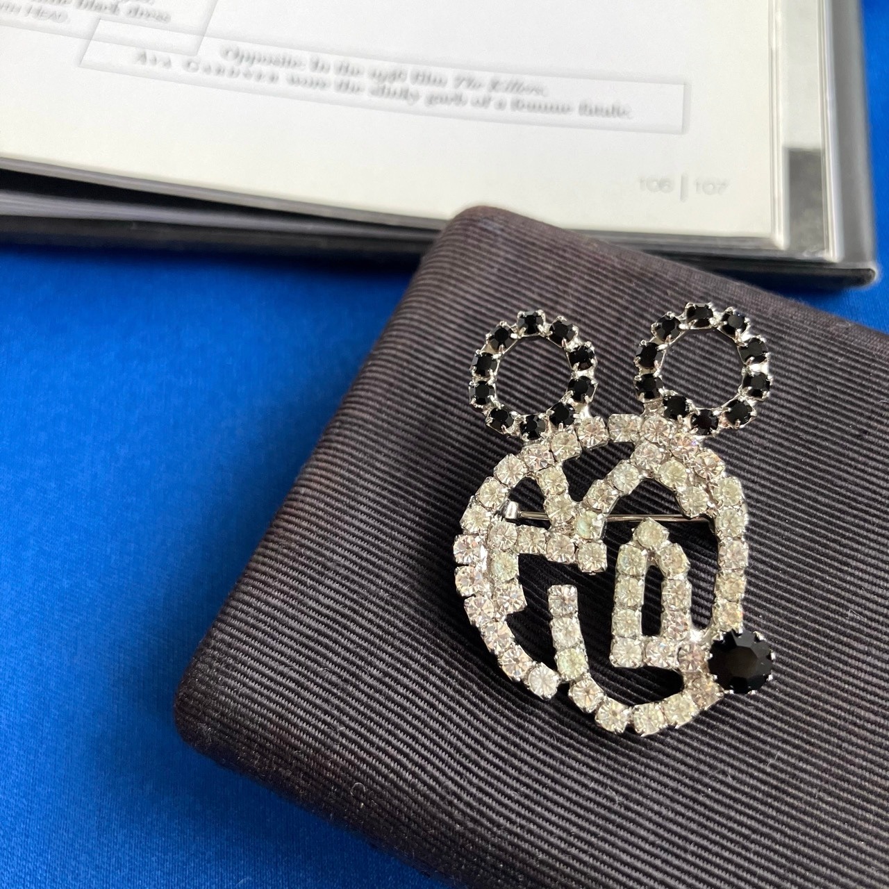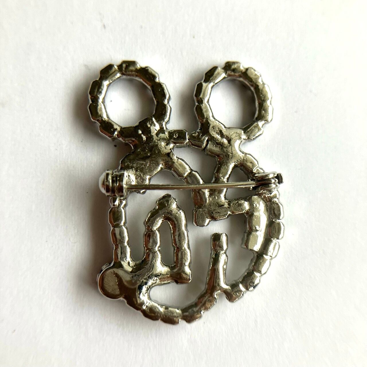 落ち着いたシルバーメタルの土台にクリアラインストーンでミッキーマウスがデザインされた、レアでとても素敵なヴィンテージブローチです。