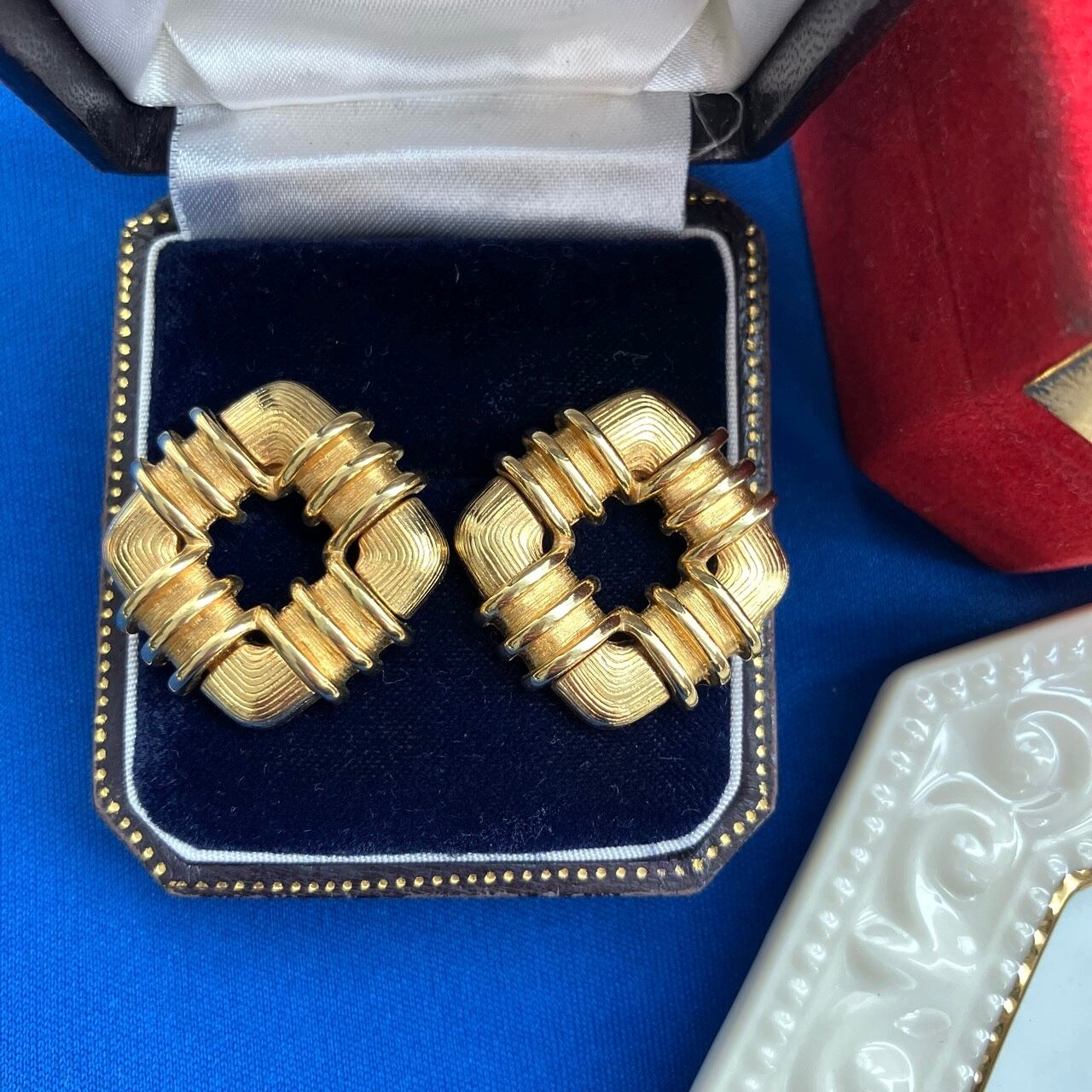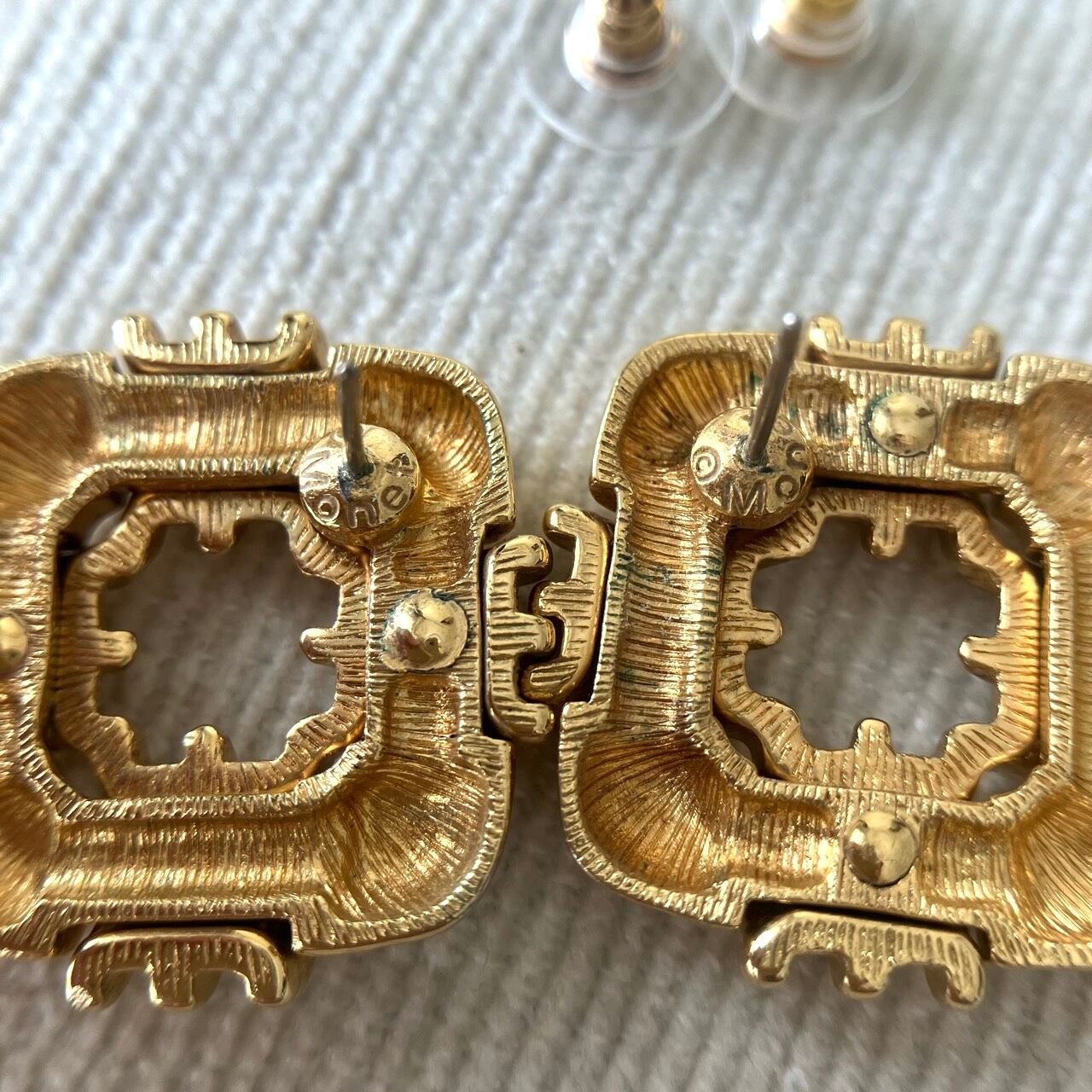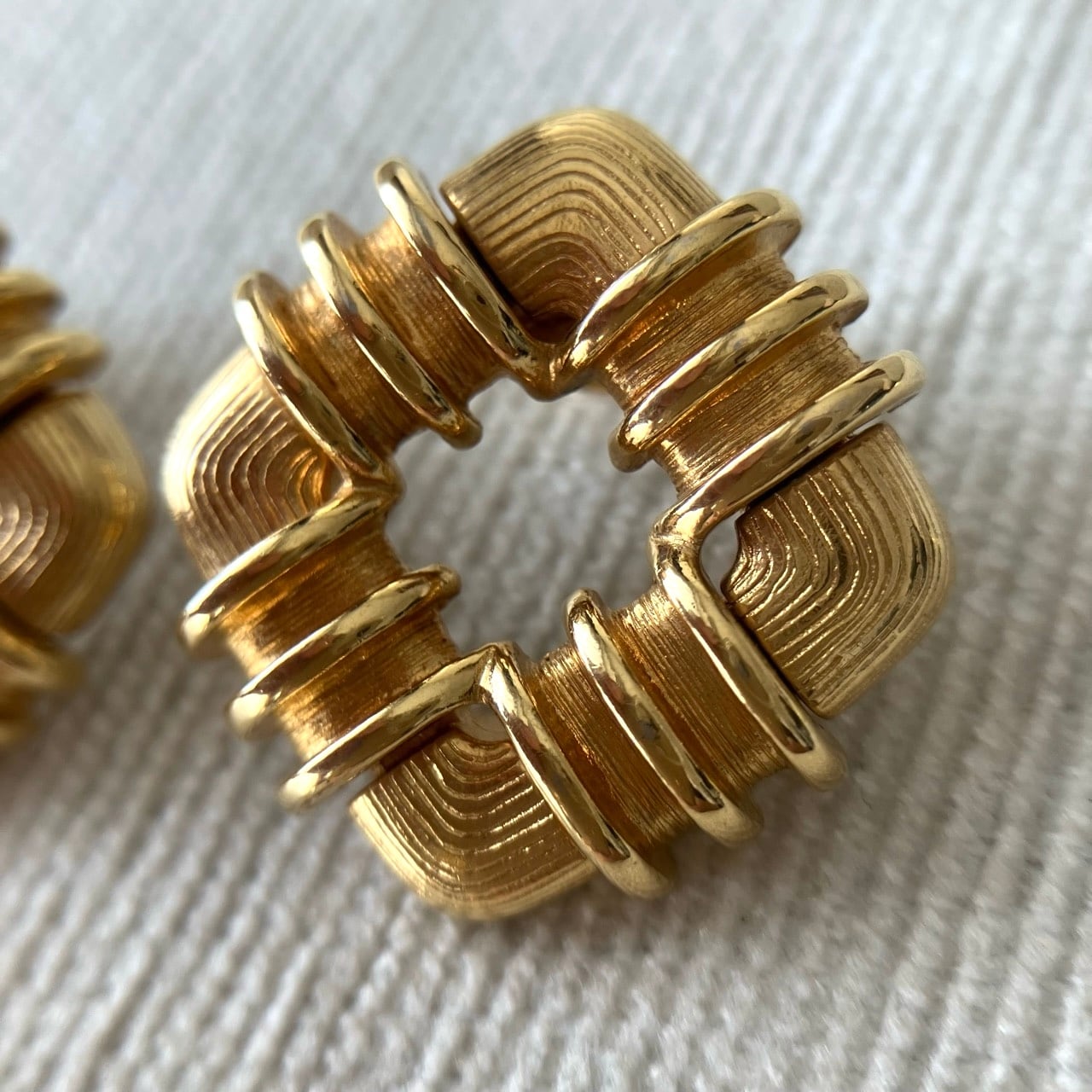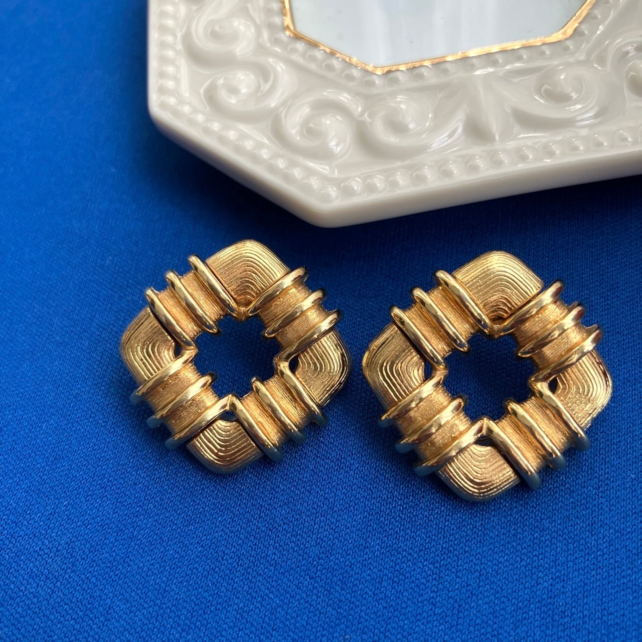 1937年にアメリカで設立された、メタルを使った高品質でモダンなデザインで人気のジュエリーメーカー"Monet"(モネ)の、ゴールドメタルの洗練されたデザインが、とてもお洒落で素敵なヴィンテージピアスです。