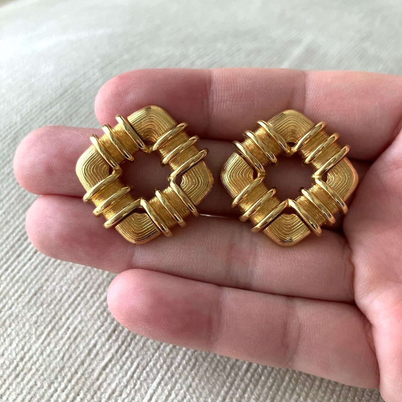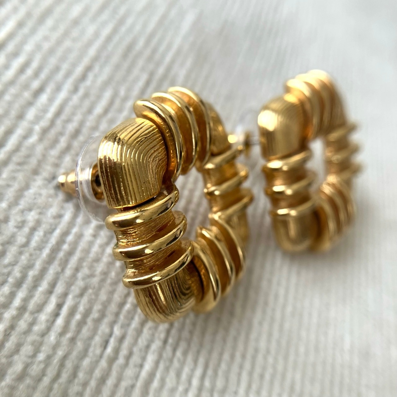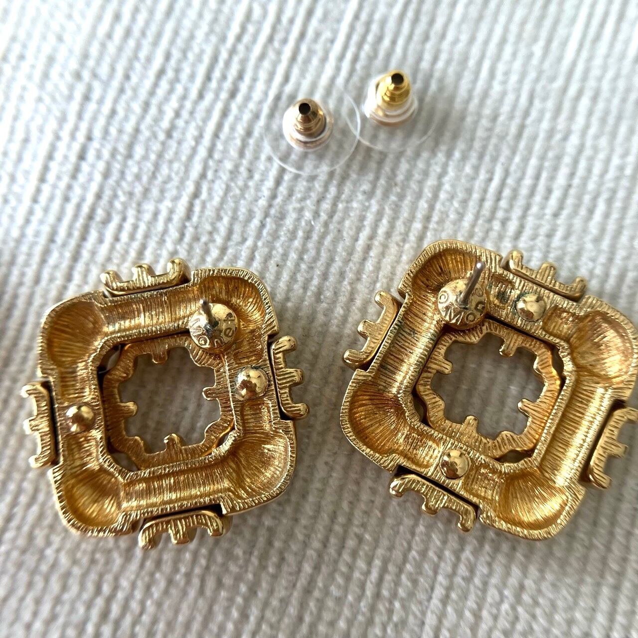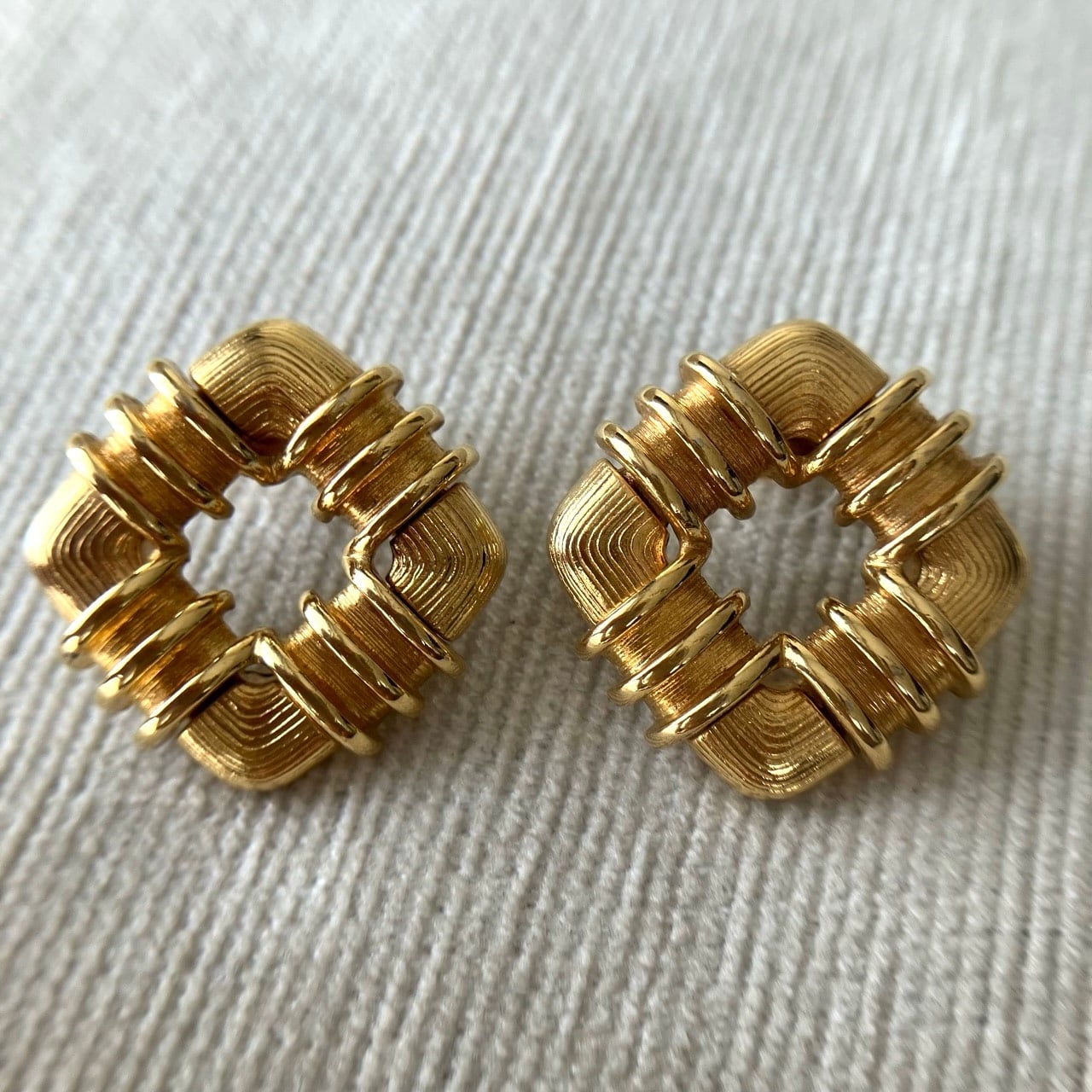 1937年にアメリカで設立された、メタルを使った高品質でモダンなデザインで人気のジュエリーメーカー"Monet"(モネ)の、ゴールドメタルの洗練されたデザインが、とてもお洒落で素敵なヴィンテージピアスです。