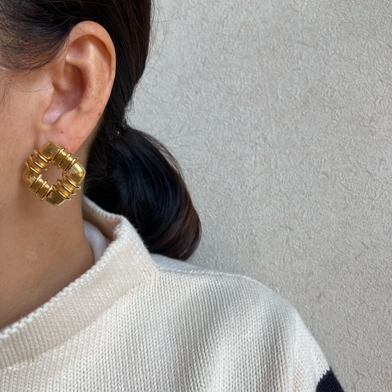 "Monet" gold design pierce[p-1350] ヴィンテージピアス