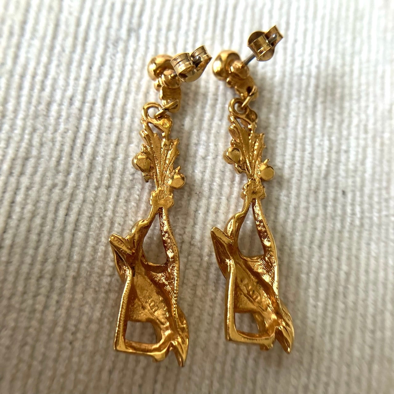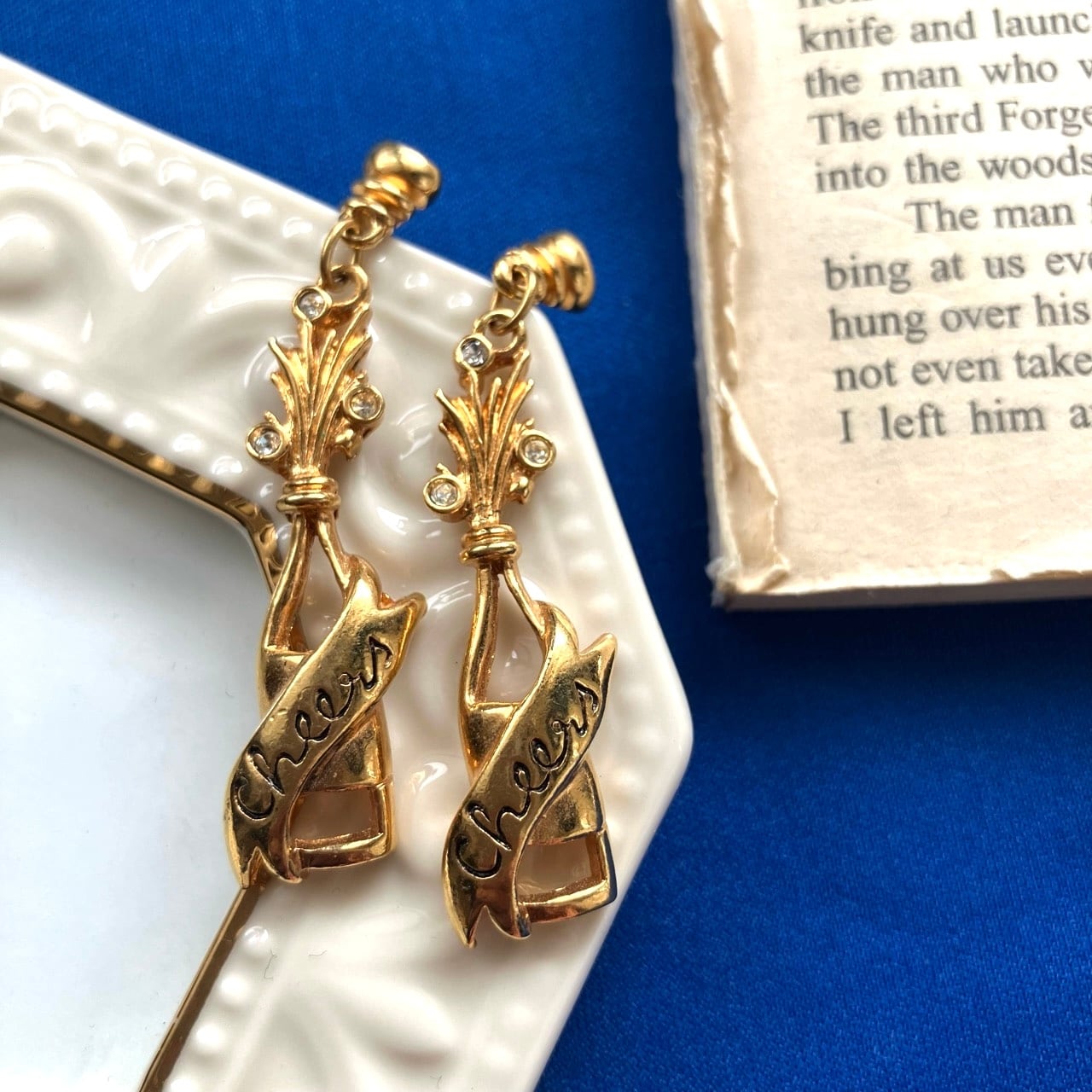 クリアラインストーンがアクセントになった、シャンパンボトルが弾けてコルクが飛んでいるユニークな揺れるデザインが、とても素敵な”AVON”(エイボン)のヴィンテージピアスです。