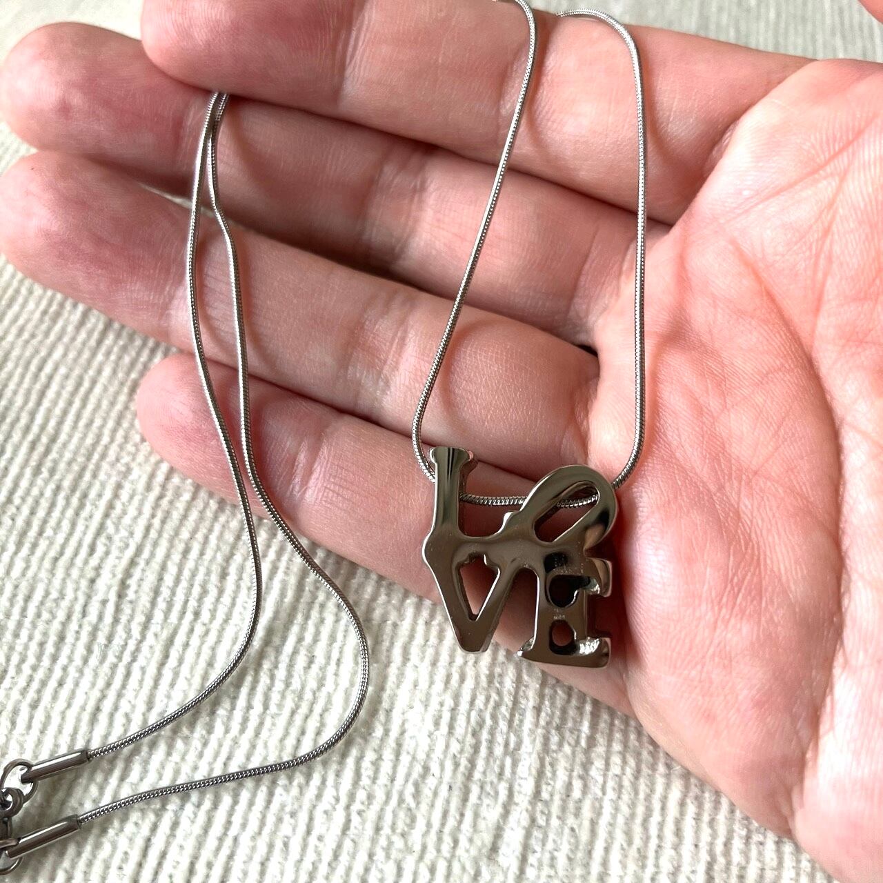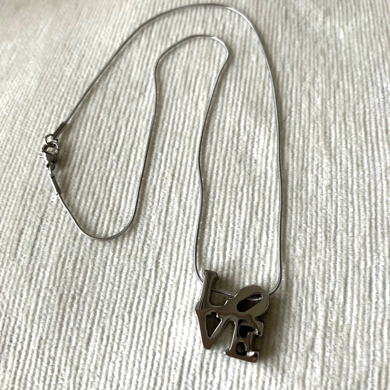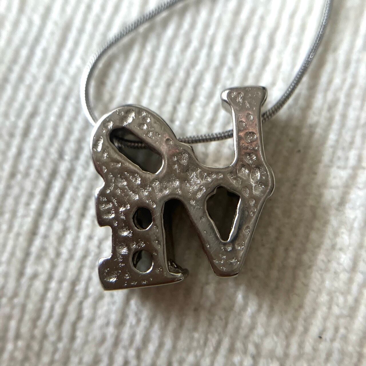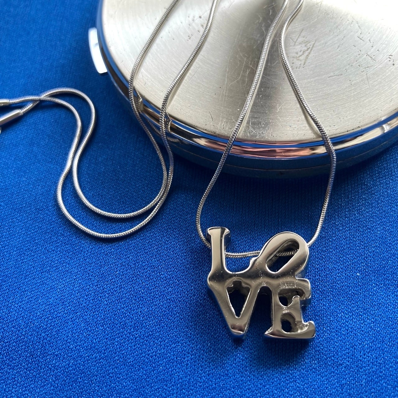 シルバーメタルの立体的な"LOVE"がモチーフになったスペシャルなデザインが、とても素敵なヴィンテージネックレスです。