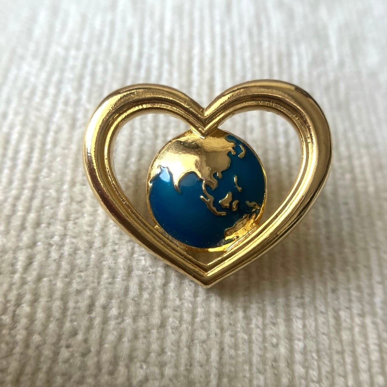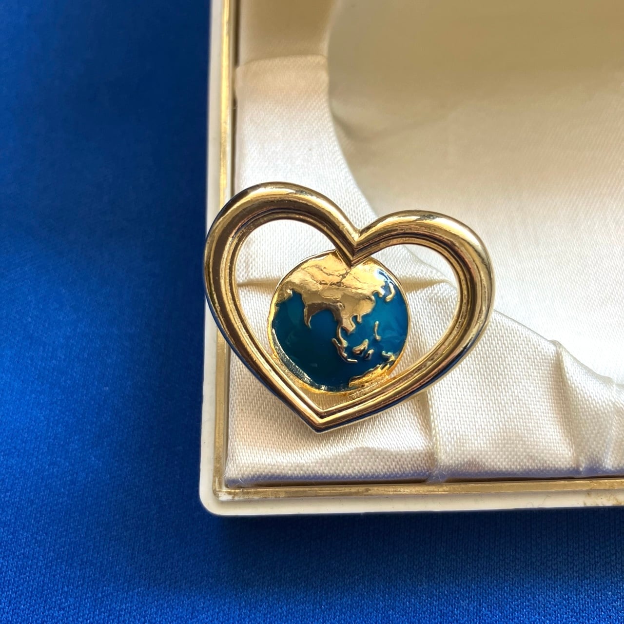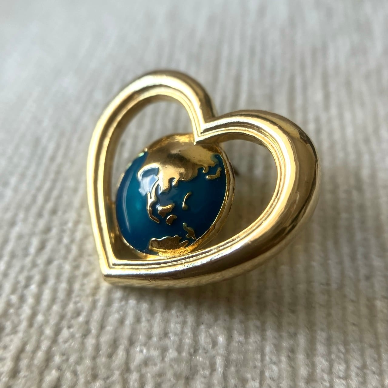 ゴールドメタルのハートに包まれた美しい地球のデザインが、とても素敵な”AVON”(エイボン)のヴィンテージピンブローチです。