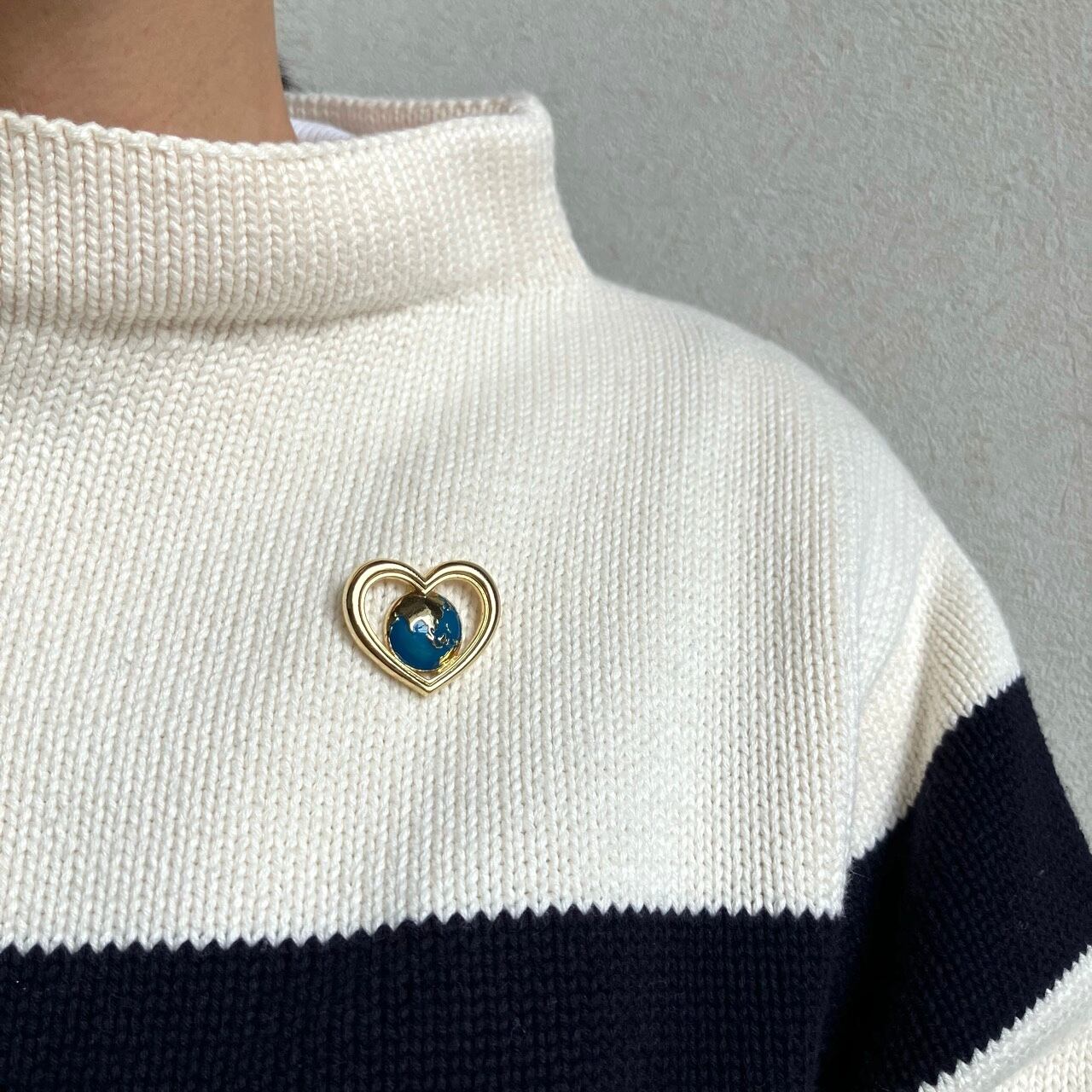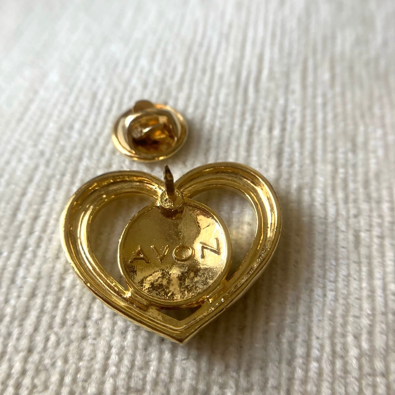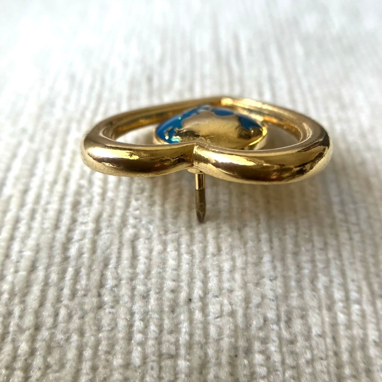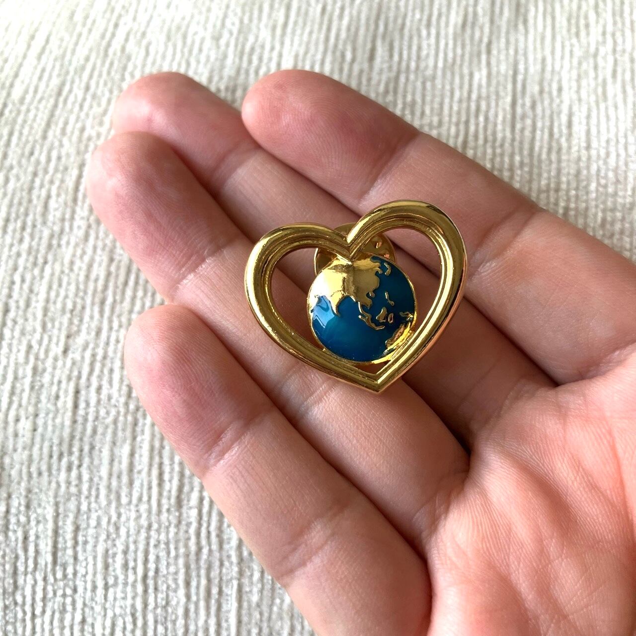 ゴールドメタルのハートに包まれた美しい地球のデザインが、とても素敵な”AVON”(エイボン)のヴィンテージピンブローチです。