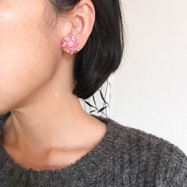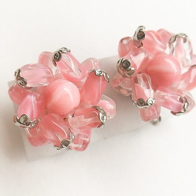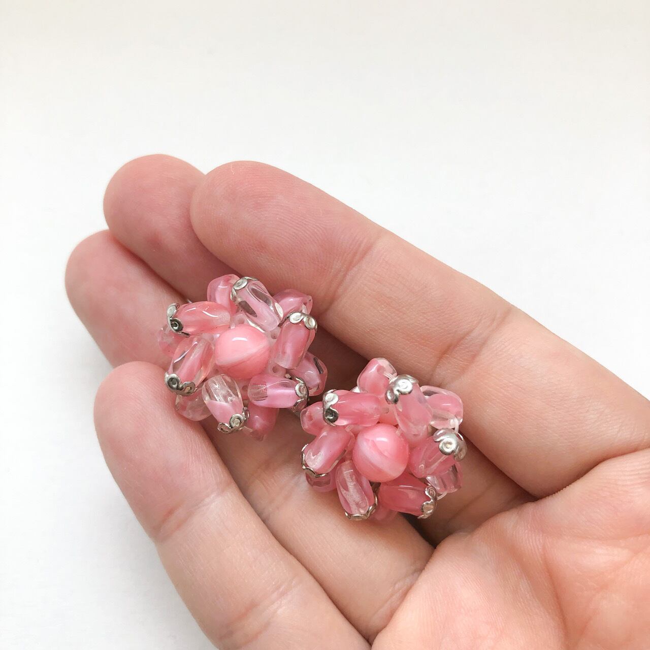 pink beads cluster earring[e-974] ヴィンテージイヤリング