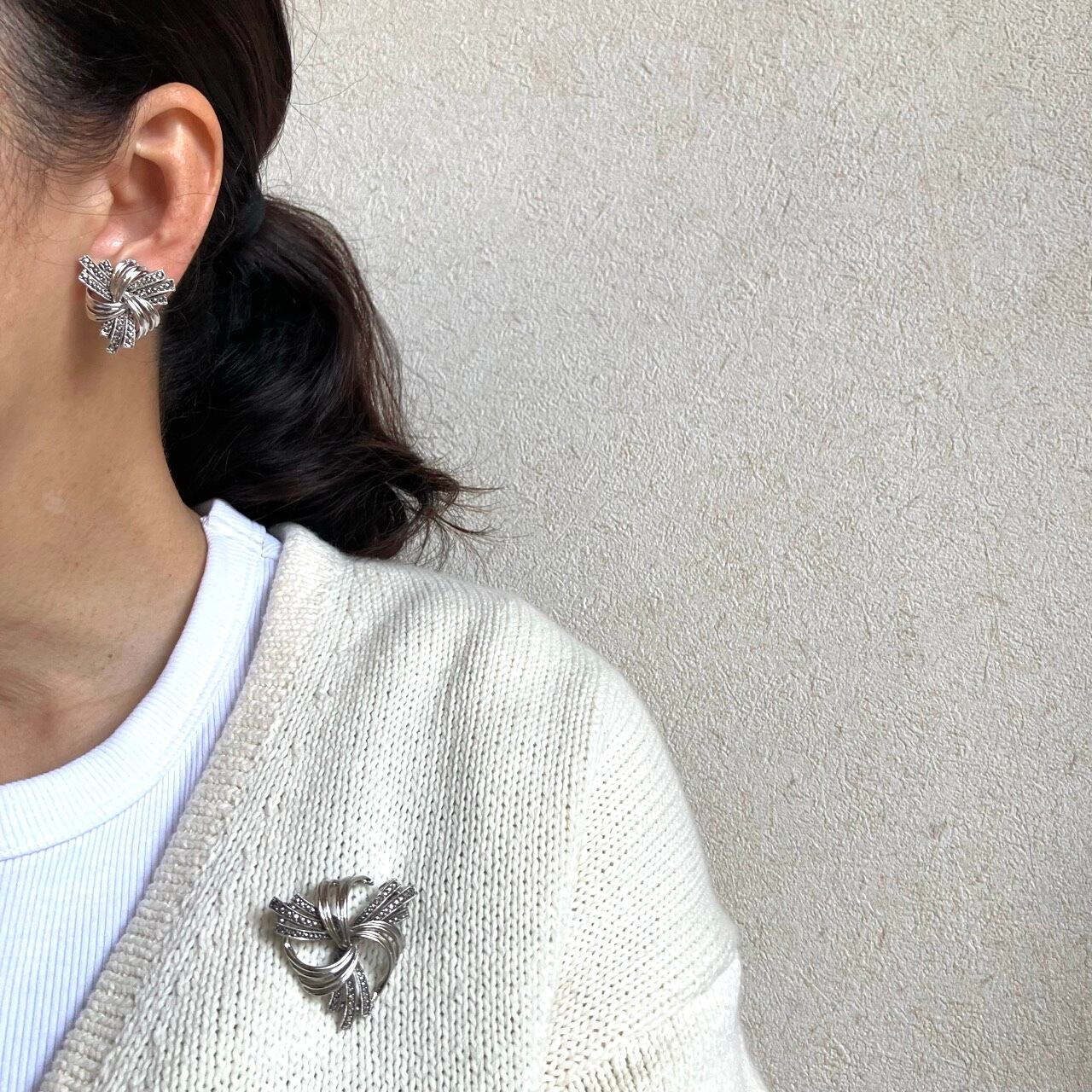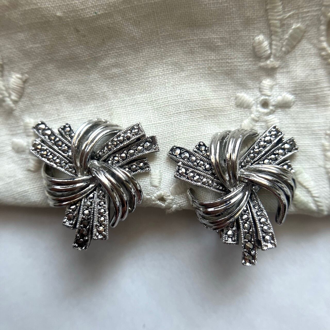 1939年にロンドンで設立され、高品質なコンパクトなどを制作、50年代にはジュエリーの制作も始めたメーカー“KIGU”の、落ち着いたシルバーメタルとマーカサイトでデザインされた、とても素敵なヴィンテージイヤリングです。