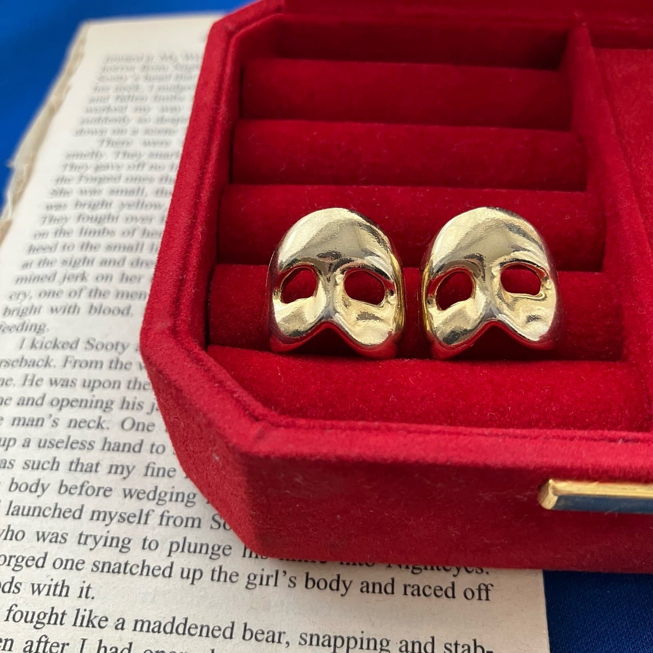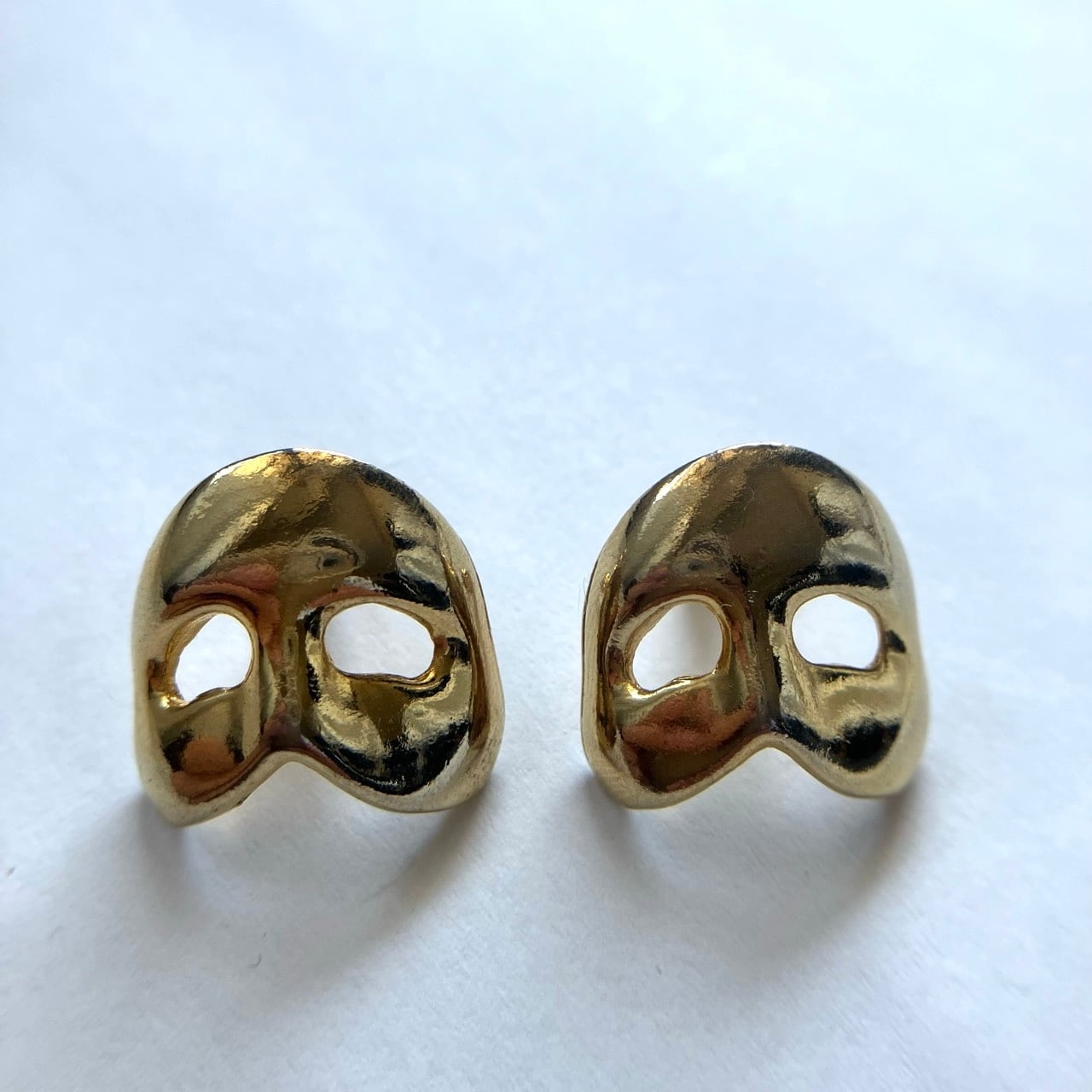 ゴールドメタルの仮面のデザインが特徴的な、"The Phantom of the Opera"(オペラ座の怪人)のヴィンテージピアスです。