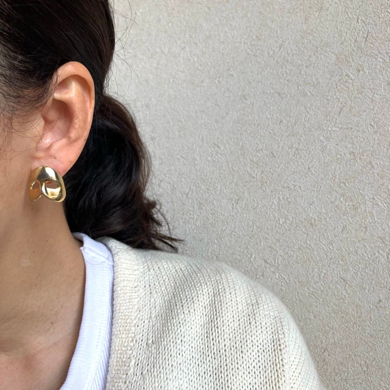 ※ピアス穴の位置によってはやや手前に傾きがちなので(気にならない程度ですが)しっかり抑えられる大きめのピアスキャッチもお付けしますのでお好みな方をお使いください。