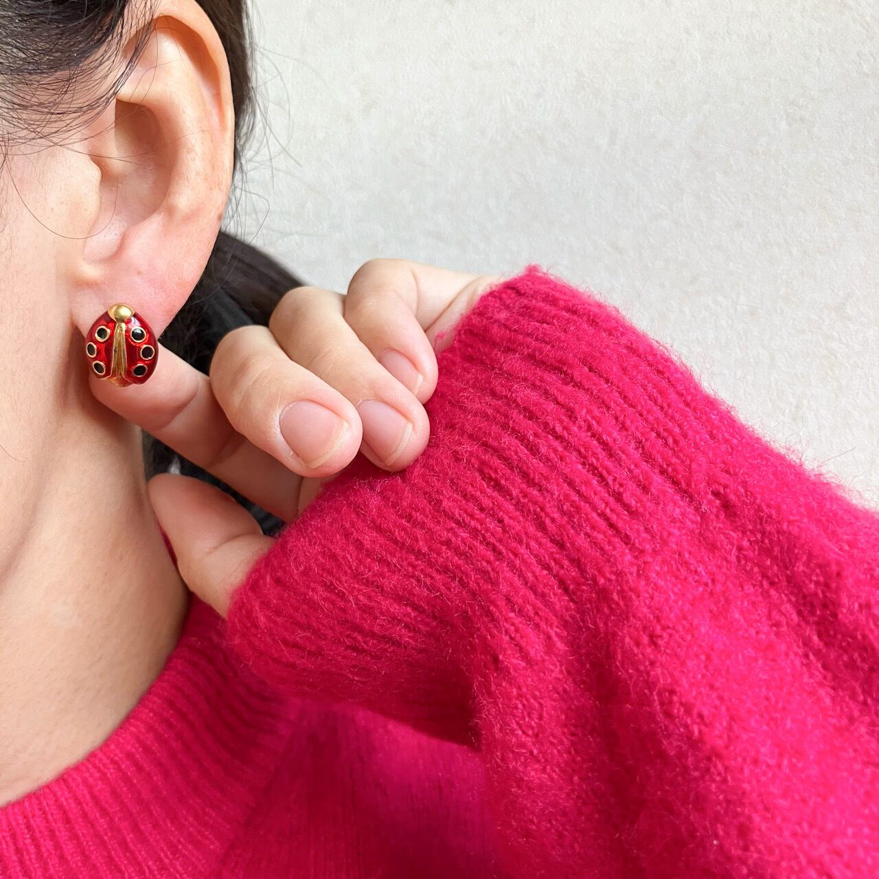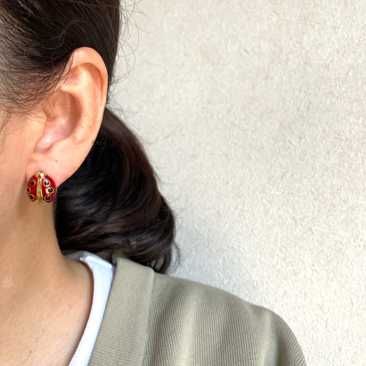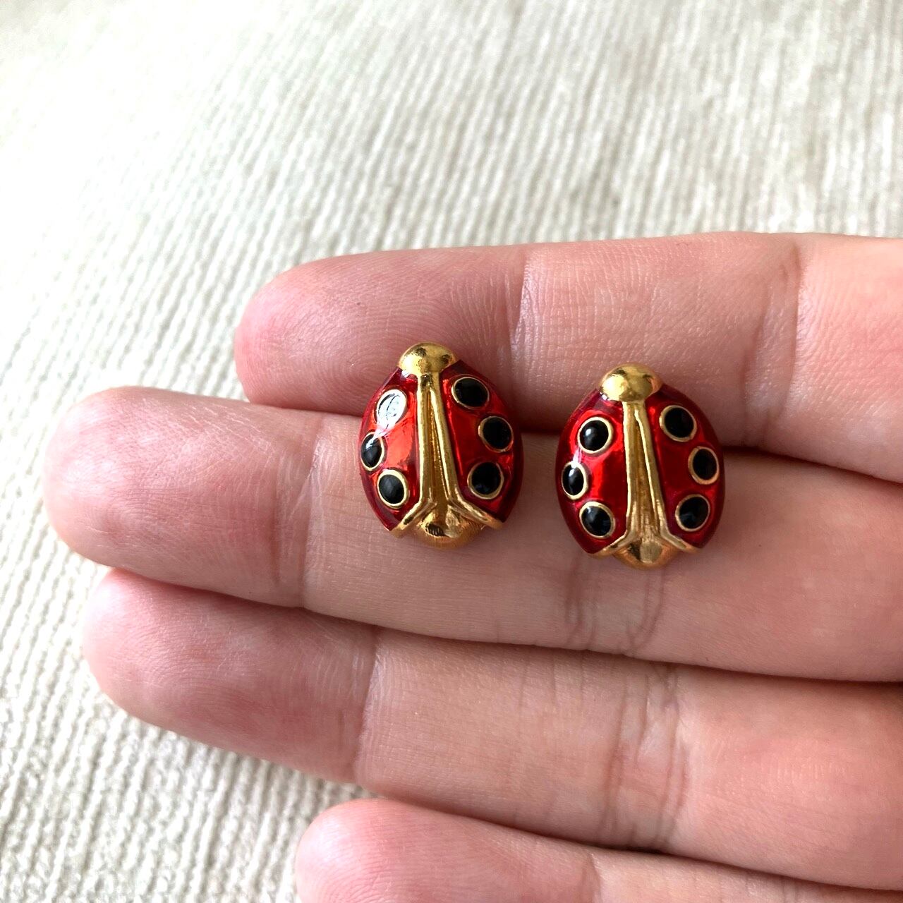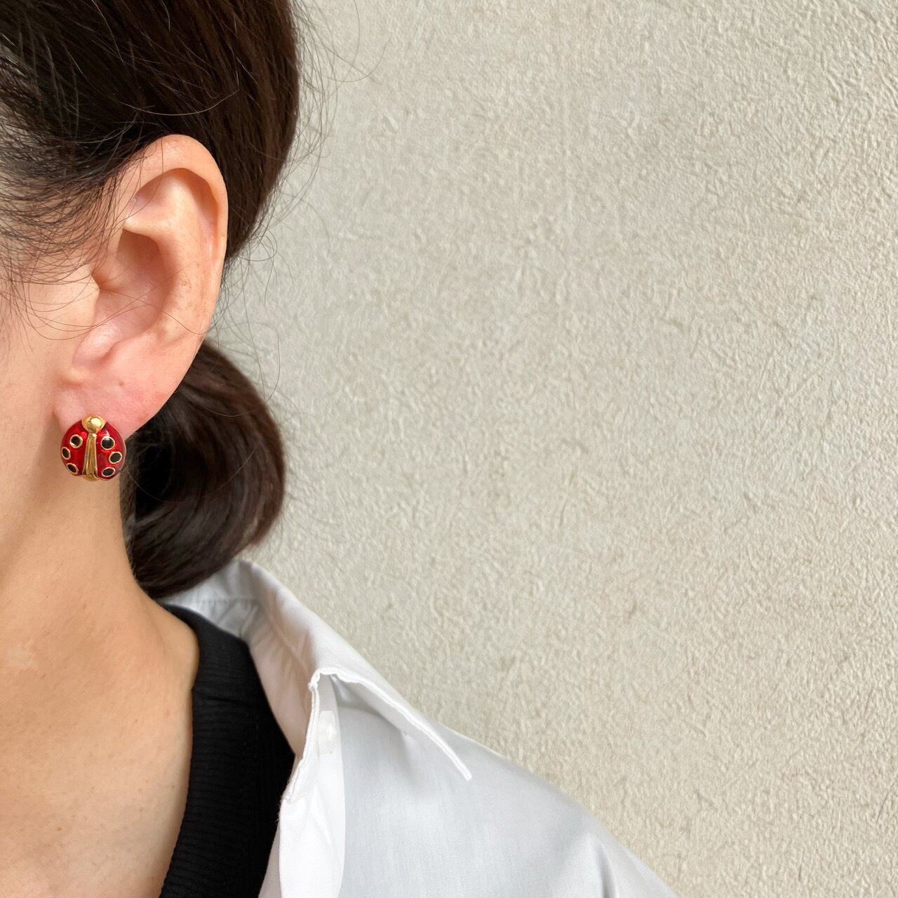 落ち着いたレッドエナメルのレディバグ、てんとう虫のデザインが、とても素敵な”AVON”(エイボン)のヴィンテージピアスです。