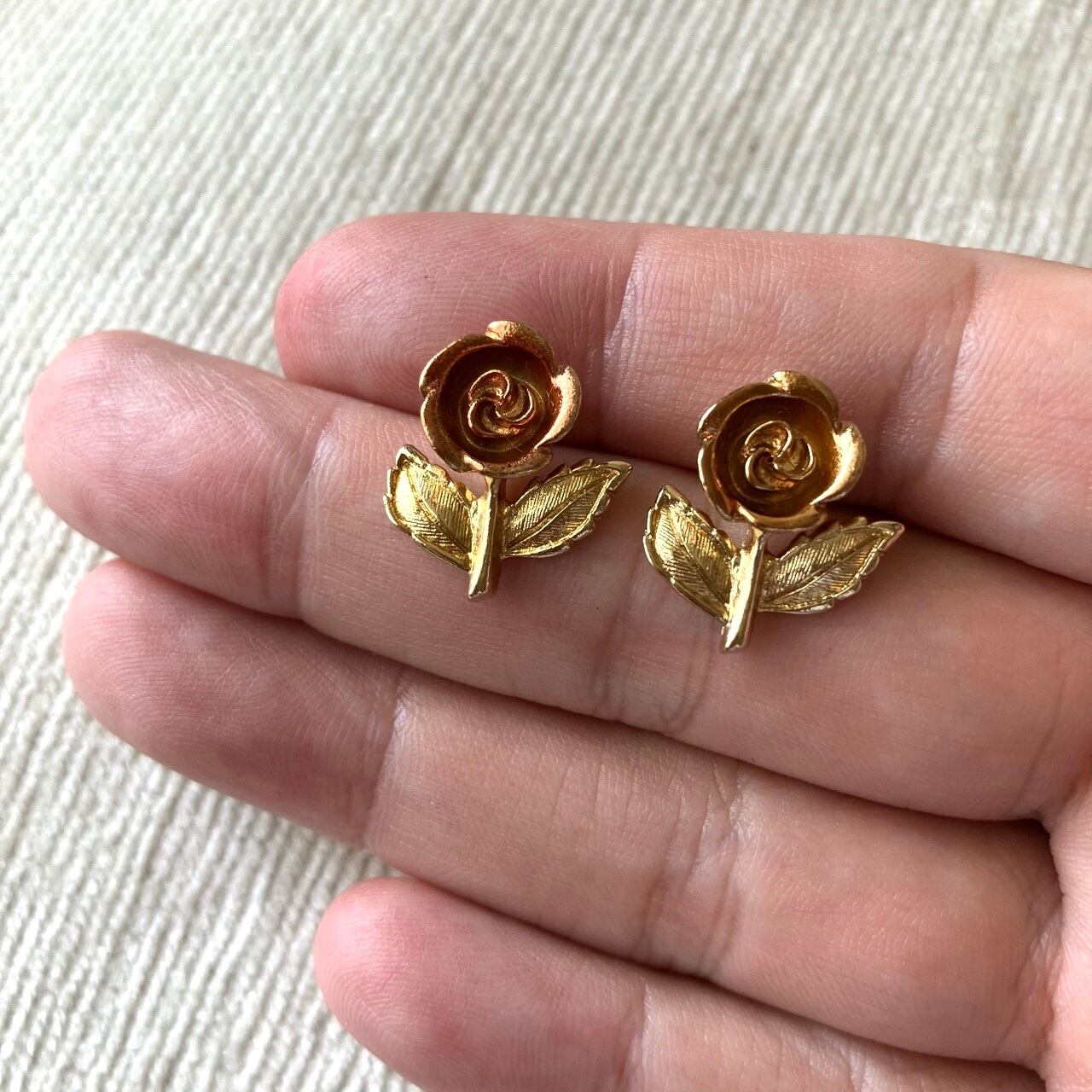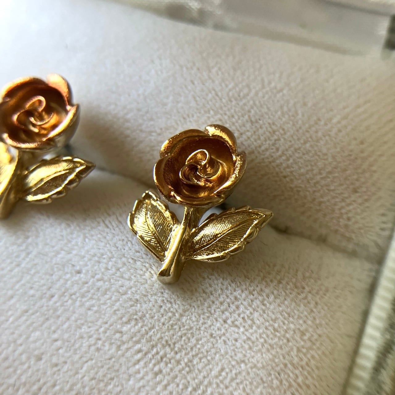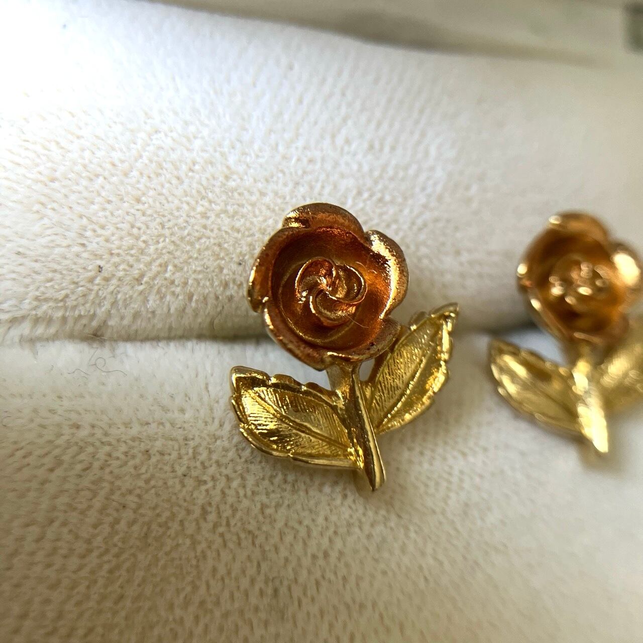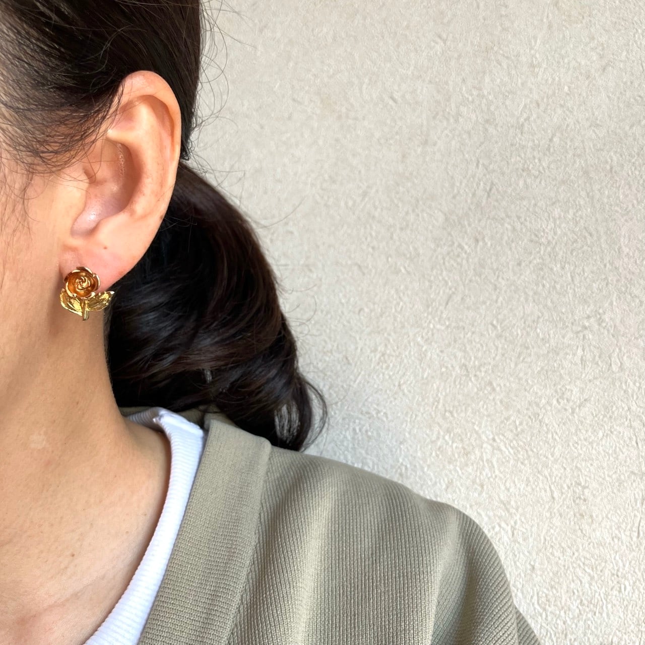 ゴールドメタルの立体的な美しい薔薇のデザインが、とても素敵な”AVON”(エイボン)のヴィンテージピアスです。