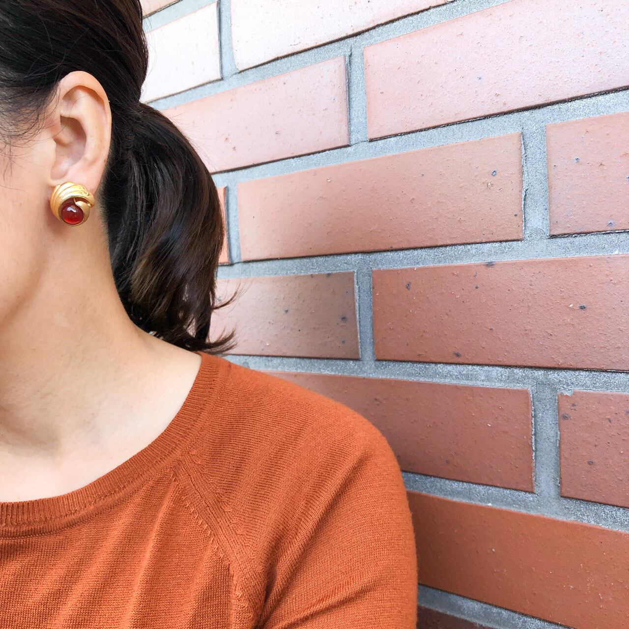 gold & red earring[e-1052] ヴィンテージイヤリング