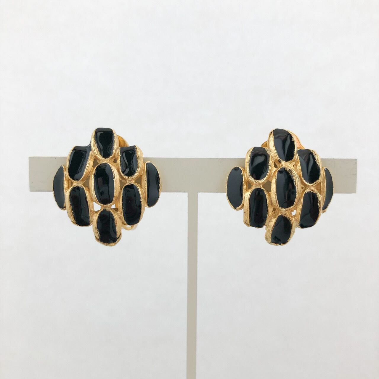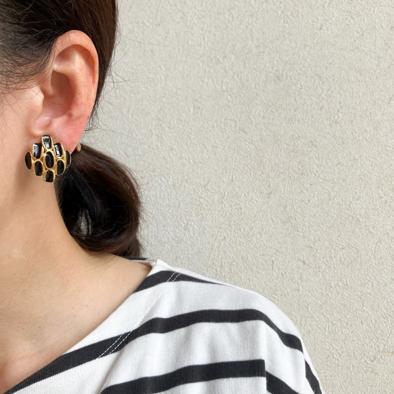 ゴールドメタルにブラックエナメルのモダンなオブジェのようなデザインが、さりげない存在感がありとても素敵なイヤリングです。