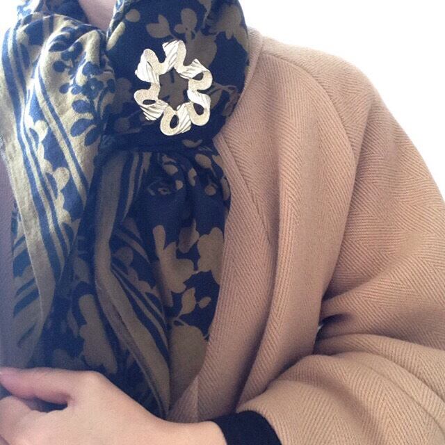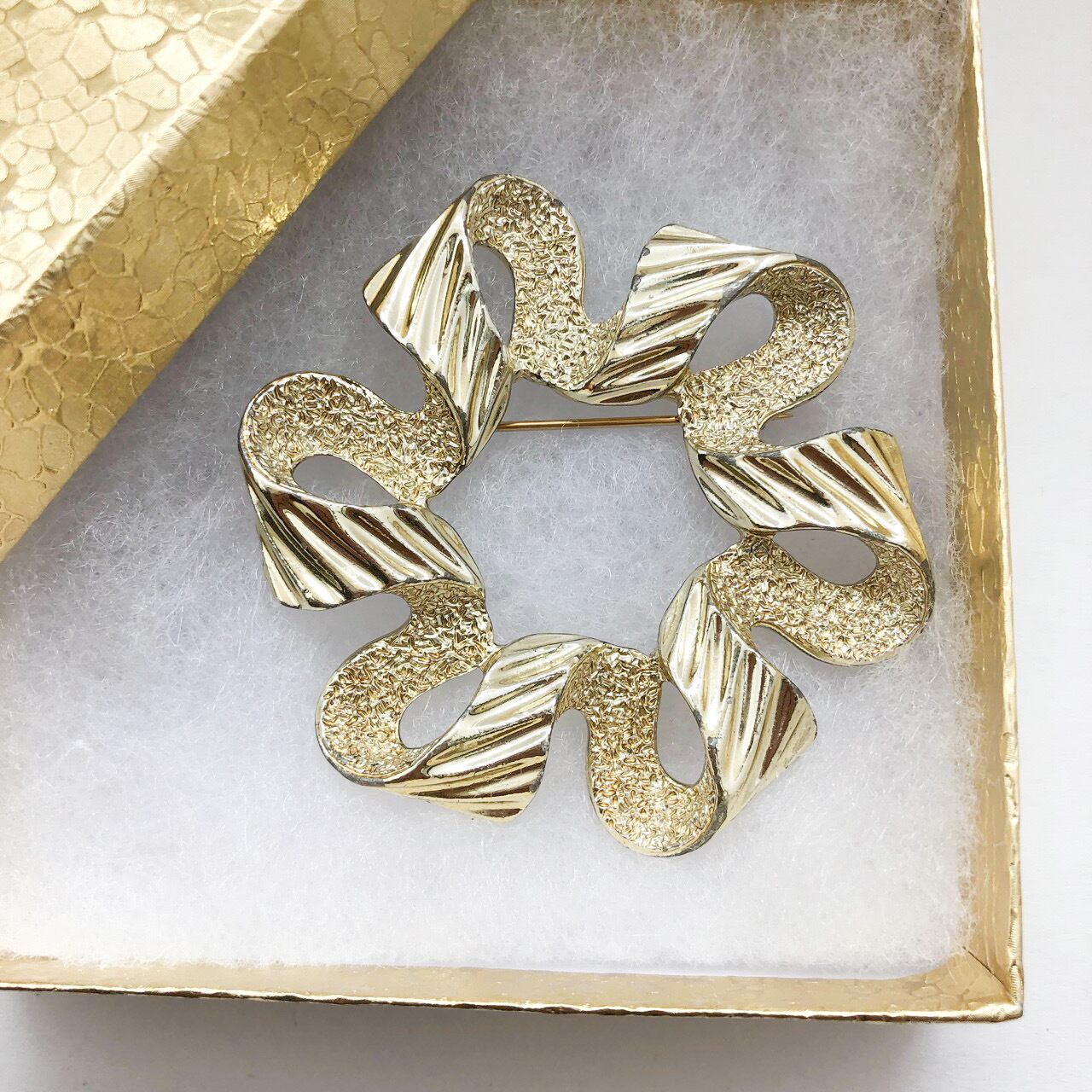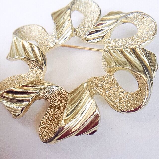 明るいゴールドメタルのリボンが波打ったようなデザインがとても素敵な大きめブローチです。