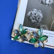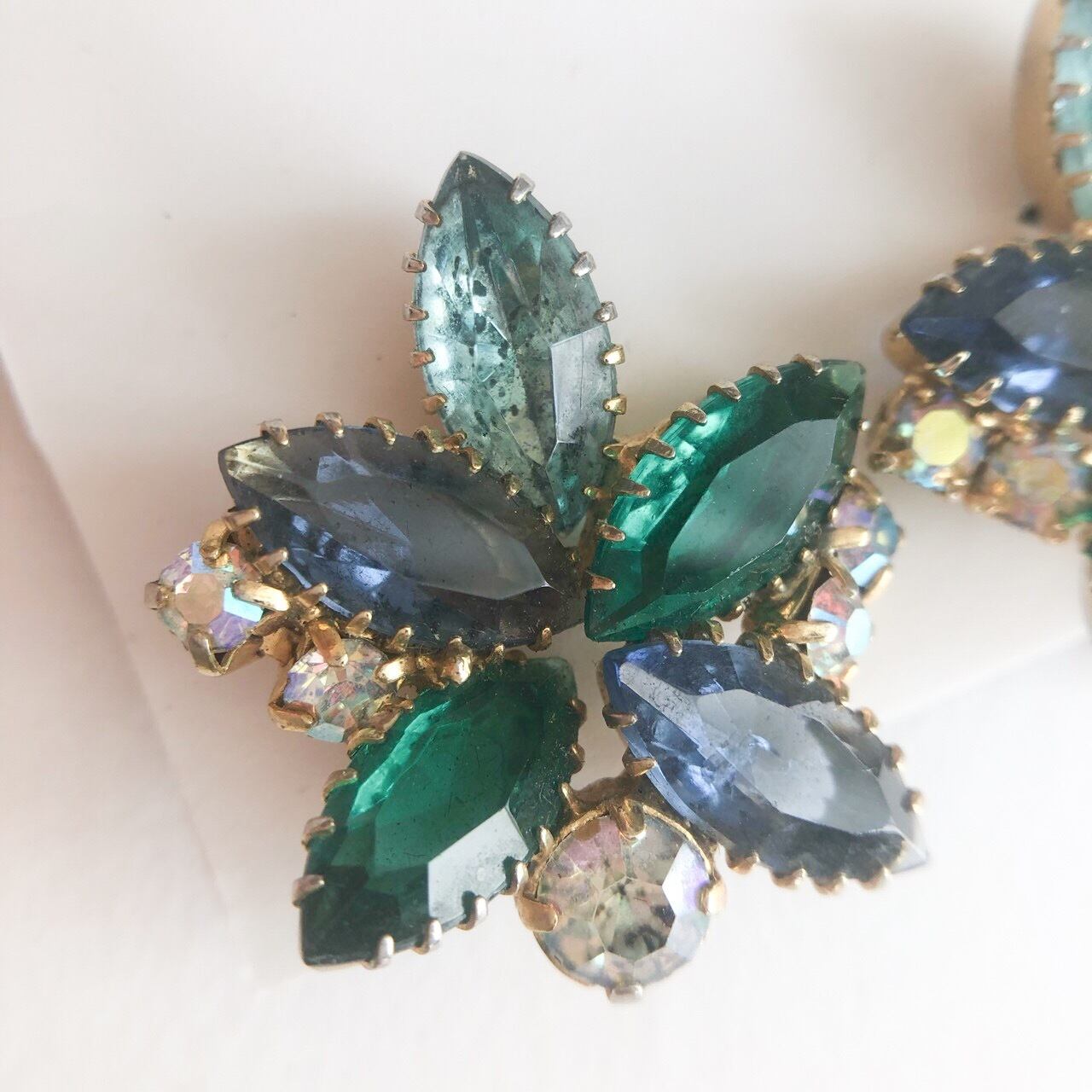 絶妙な色合いのブルー&グリーン系のラインストーンで、洗練されたお花のようにデザインされた、とても素敵なヴィンテージイヤリングです。