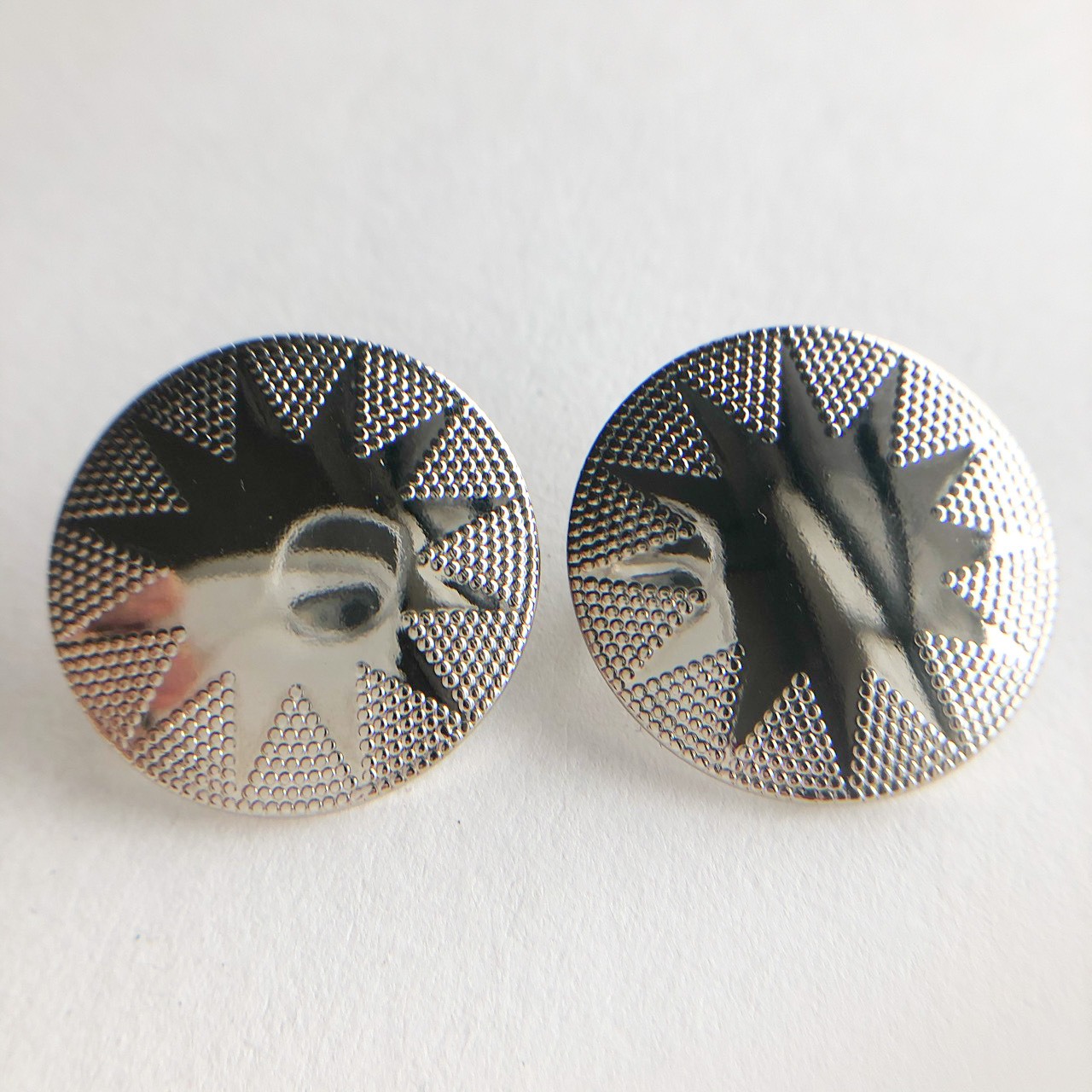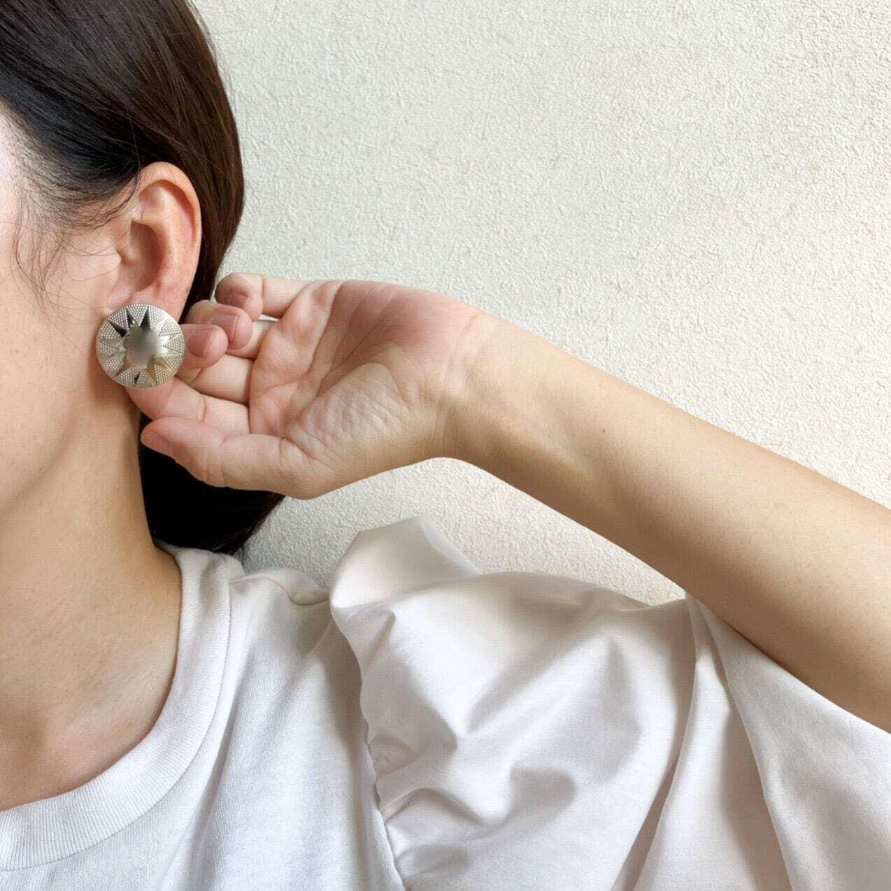 艶と加工のシルバーメタルの、モダンなスターバーストディスクデザインがとても素敵な”AVON”(エイボン)のヴィンテージイヤリングです。