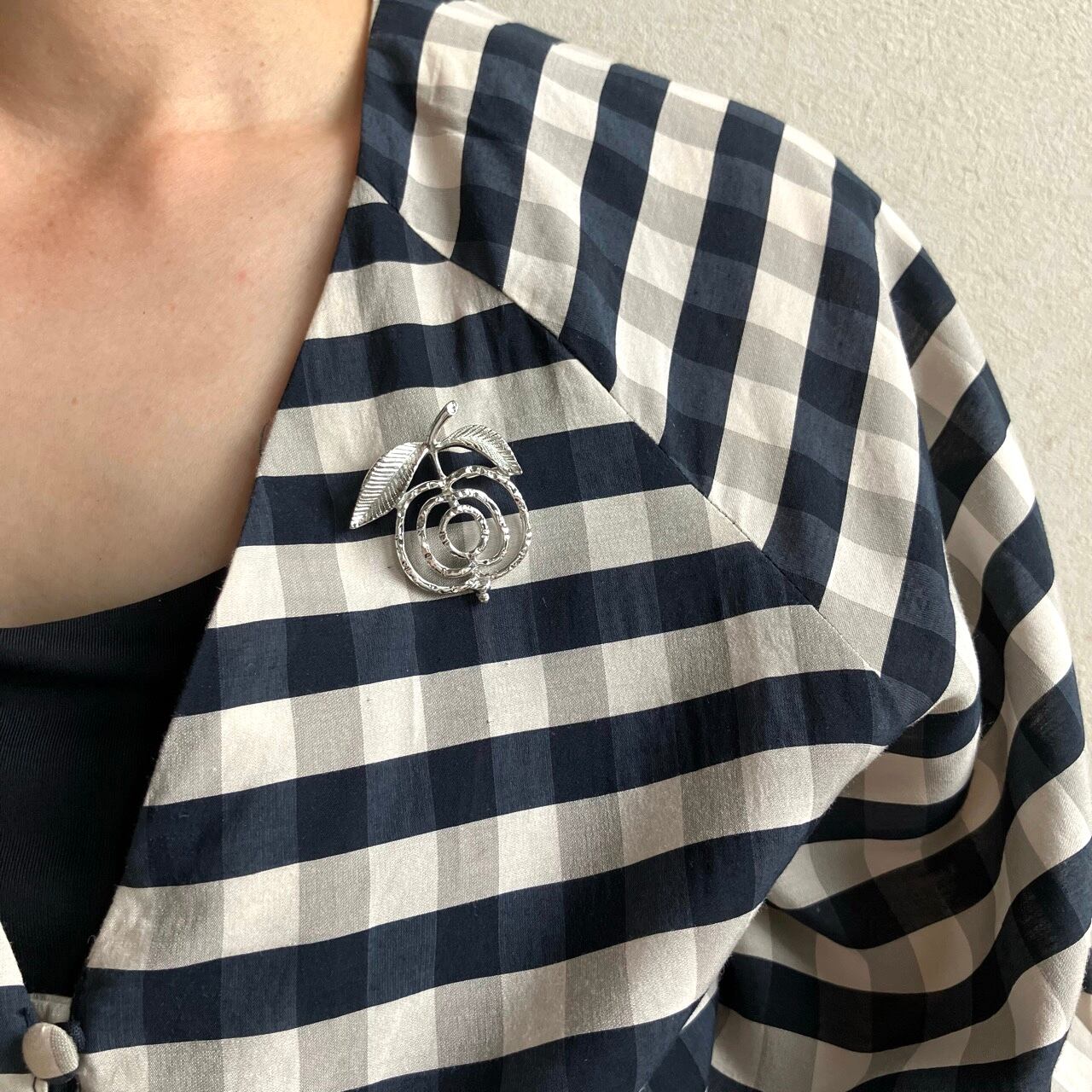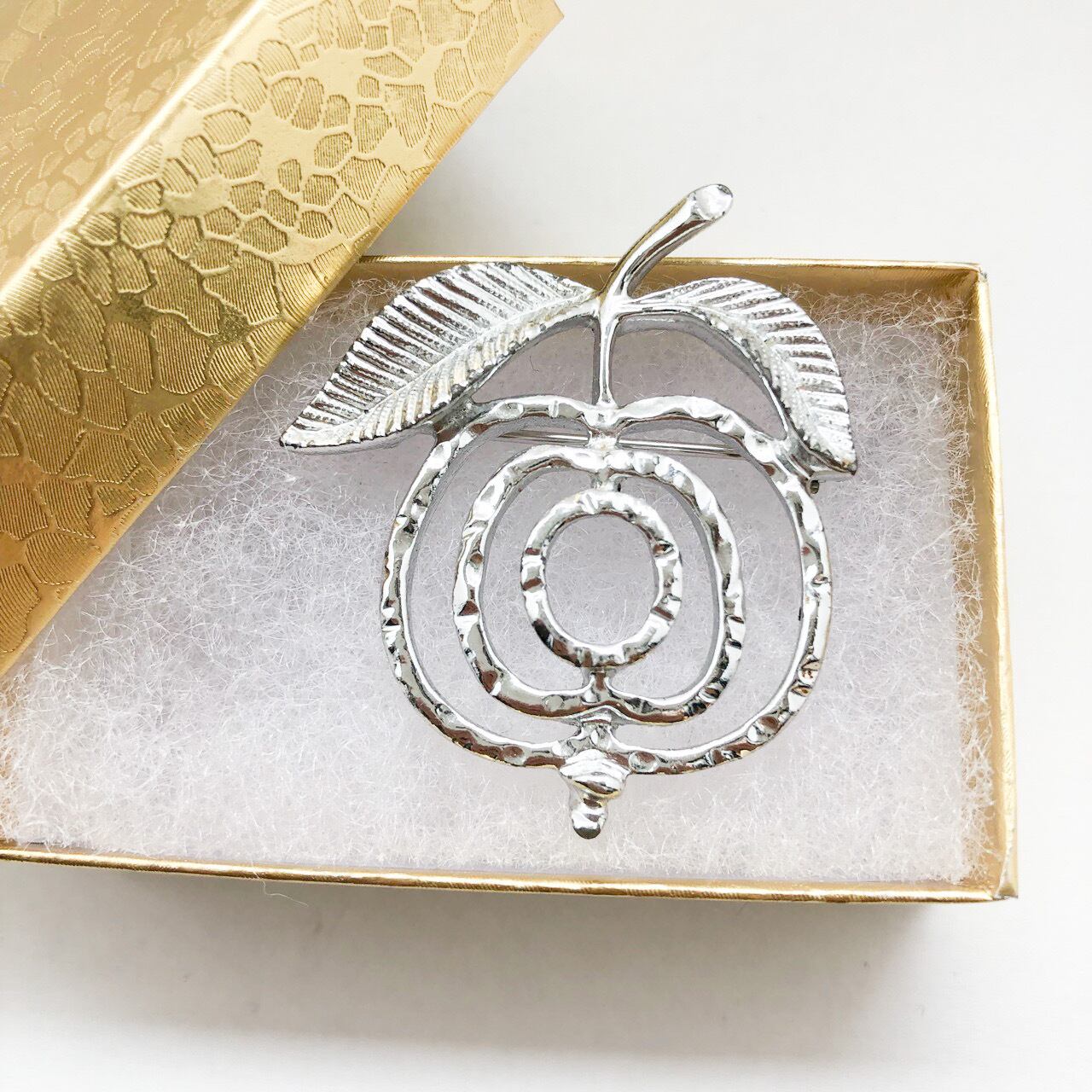 1949年に設立されたジュエリーメーカー”Sarah Coventry”(サラコベントリー )の、シルバーメタルのお洒落なリンゴのデザインがとても素敵なヴィンテージブローチです。