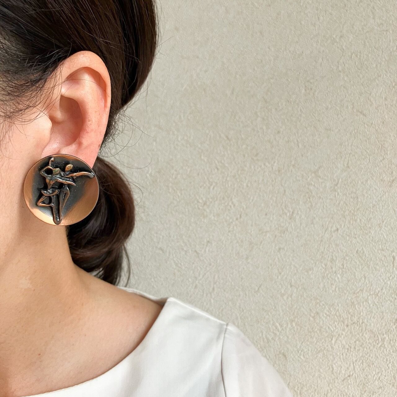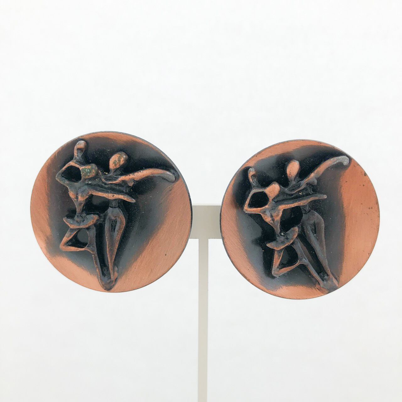 味のあるコパー(銅)で男女のダンサーがデザインされた、とても素敵なヴィンテージイヤリングです。