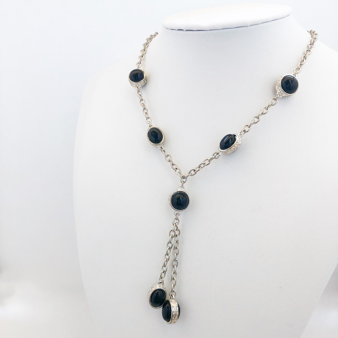 black & silver tassel necklace[n-134] ヴィンテージネックレス