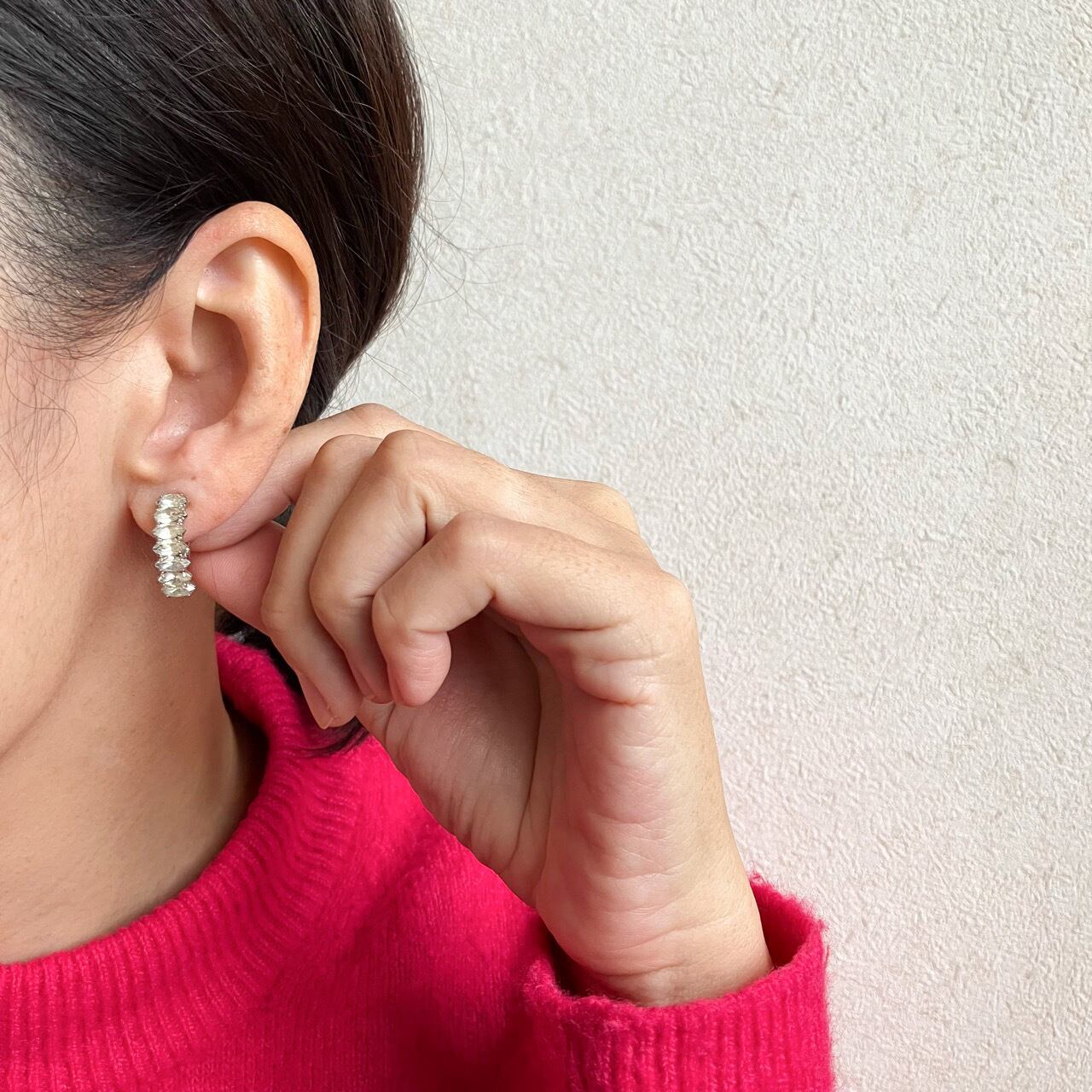 上品な小さめアーモンド型のクリアラインストーンが並んだデザインが、とても素敵なヴィンテージイヤリングです。