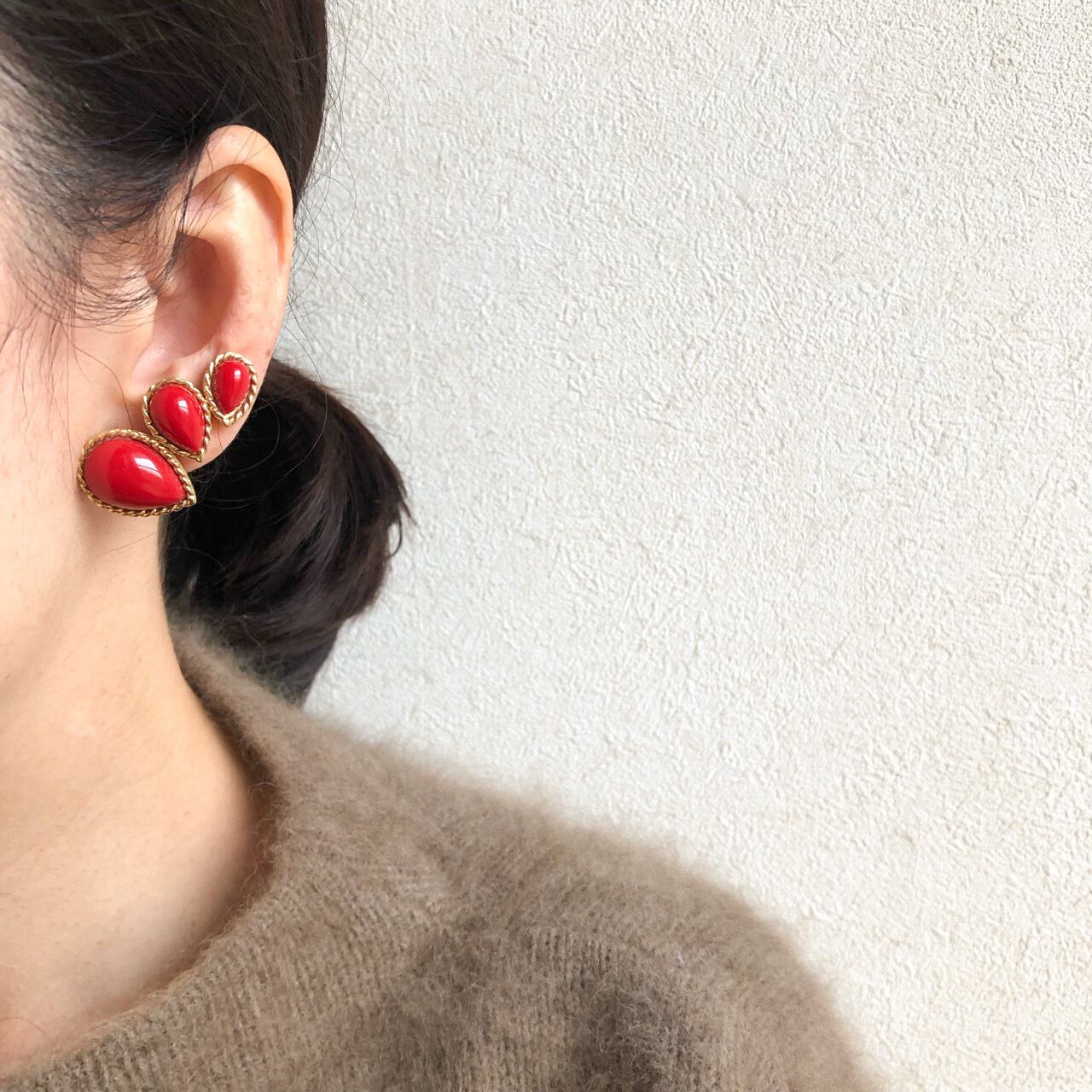 ”Trifari” red drop design earring[e-1657] ヴィンテージイヤリング