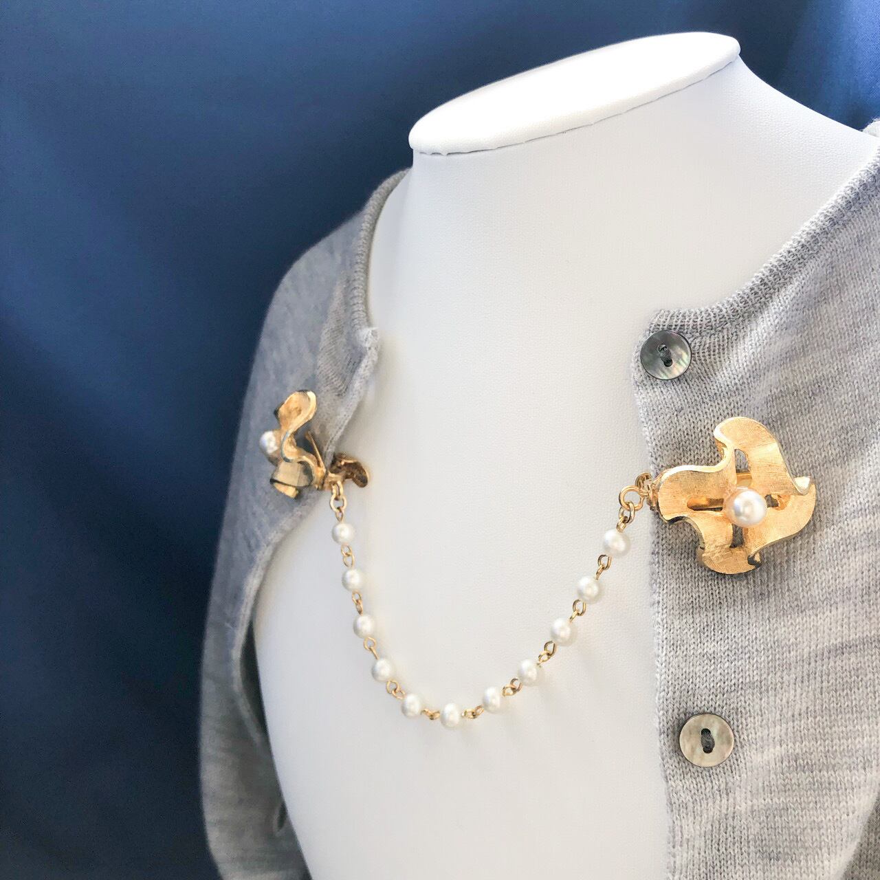 gold & pearl ribbon sweater clip[s-228] セータークリップ