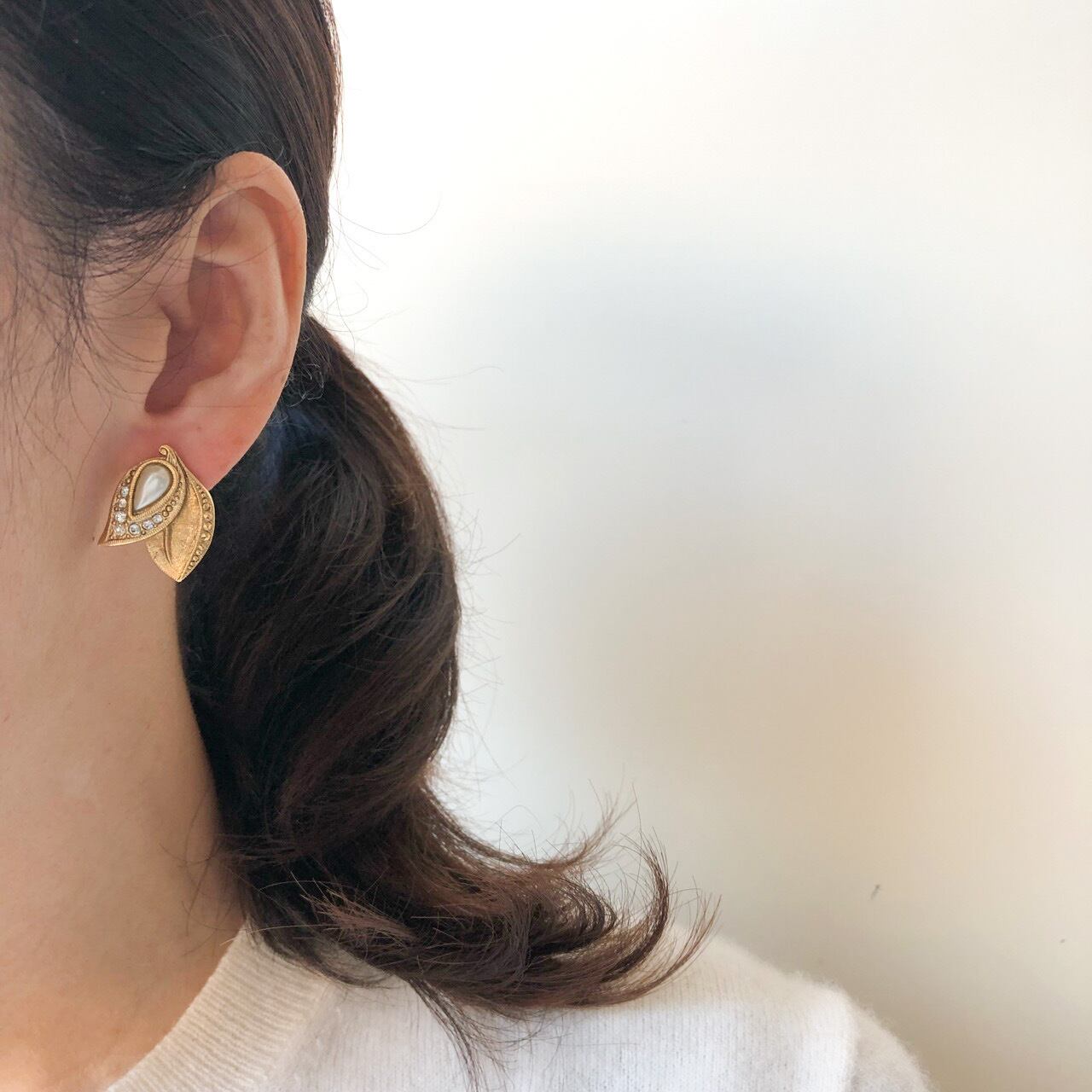"1928" pearl leaf pierce[p-961] ヴィンテージピアス